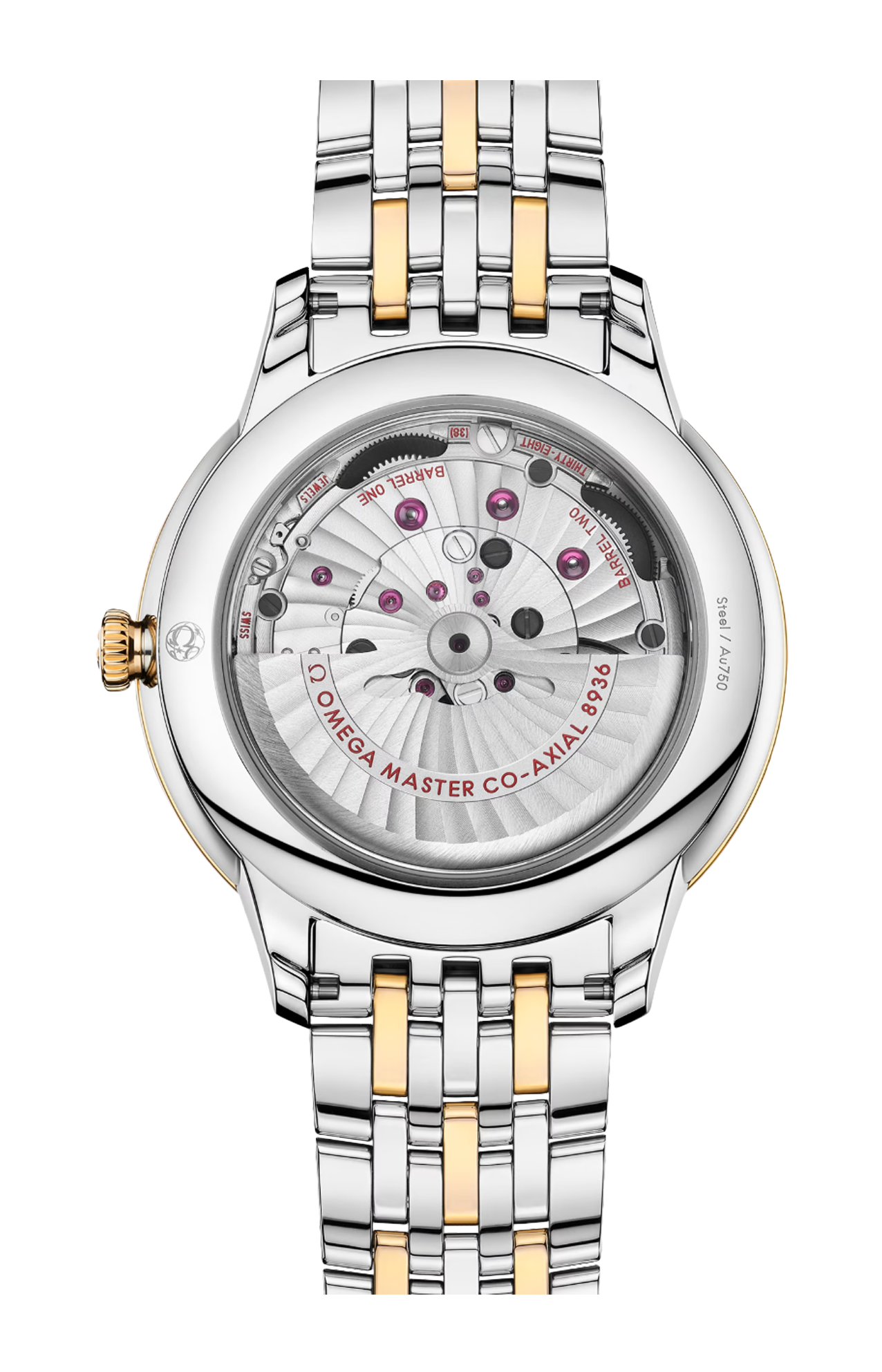 Corredato da un bracciale in acciaio inossidabile e oro giallo 18K, questo de Ville Prestige è animato dal calibro Co-Axial Master Chronometer 8936, visibile attraverso il fondello in vetro zaffiro.