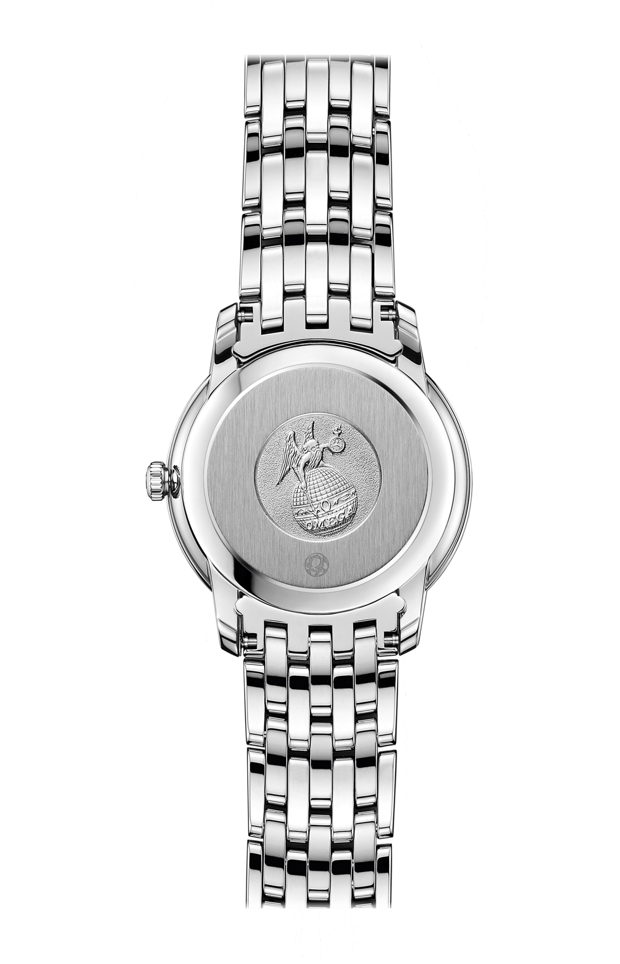 La cassa da 27,4 mm in acciaio inossidabile è corredata di un bracciale Prestige in acciaio inossidabile lucido. Il segnatempo batte al ritmo del calibro Omega 1376.