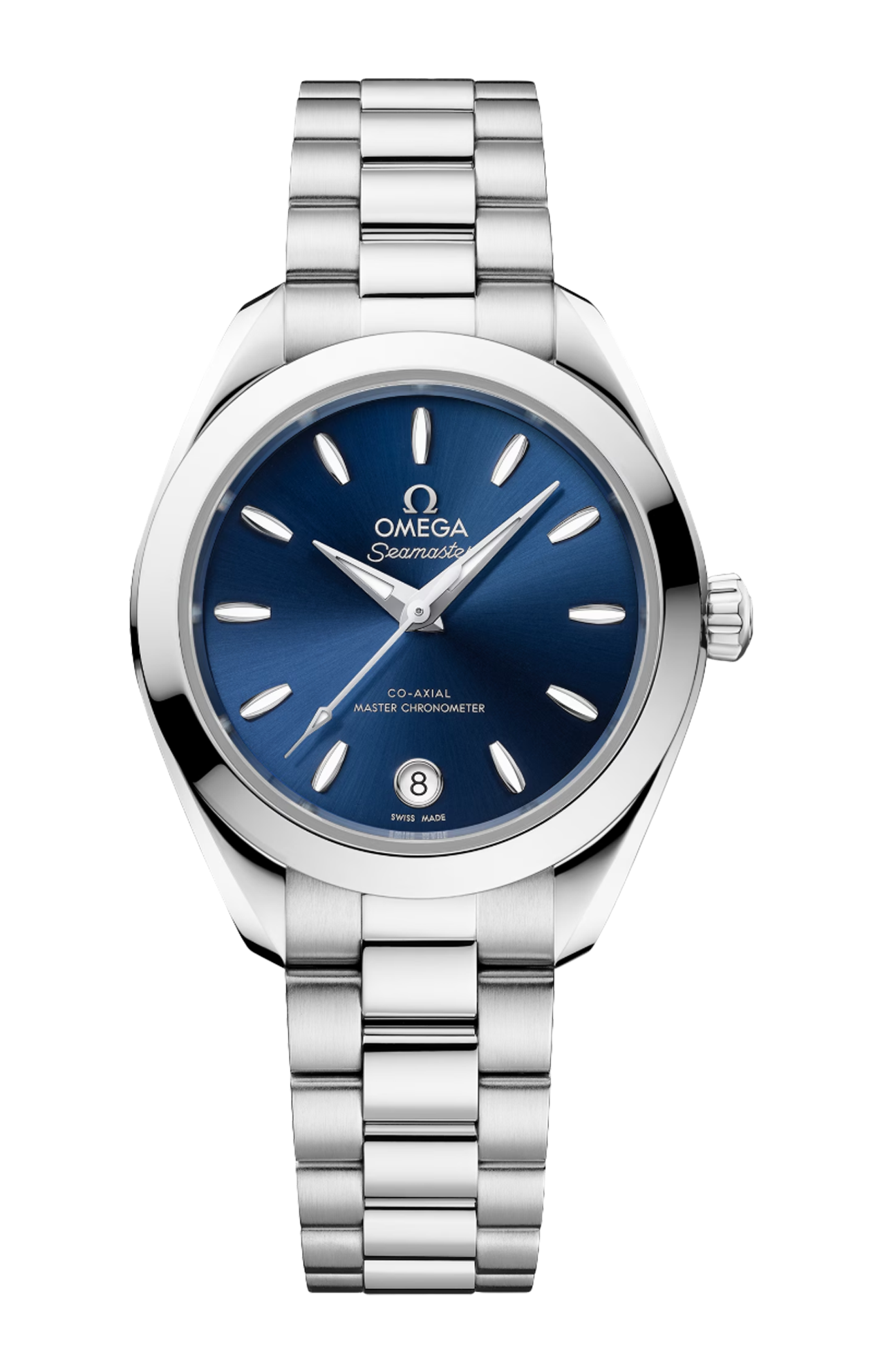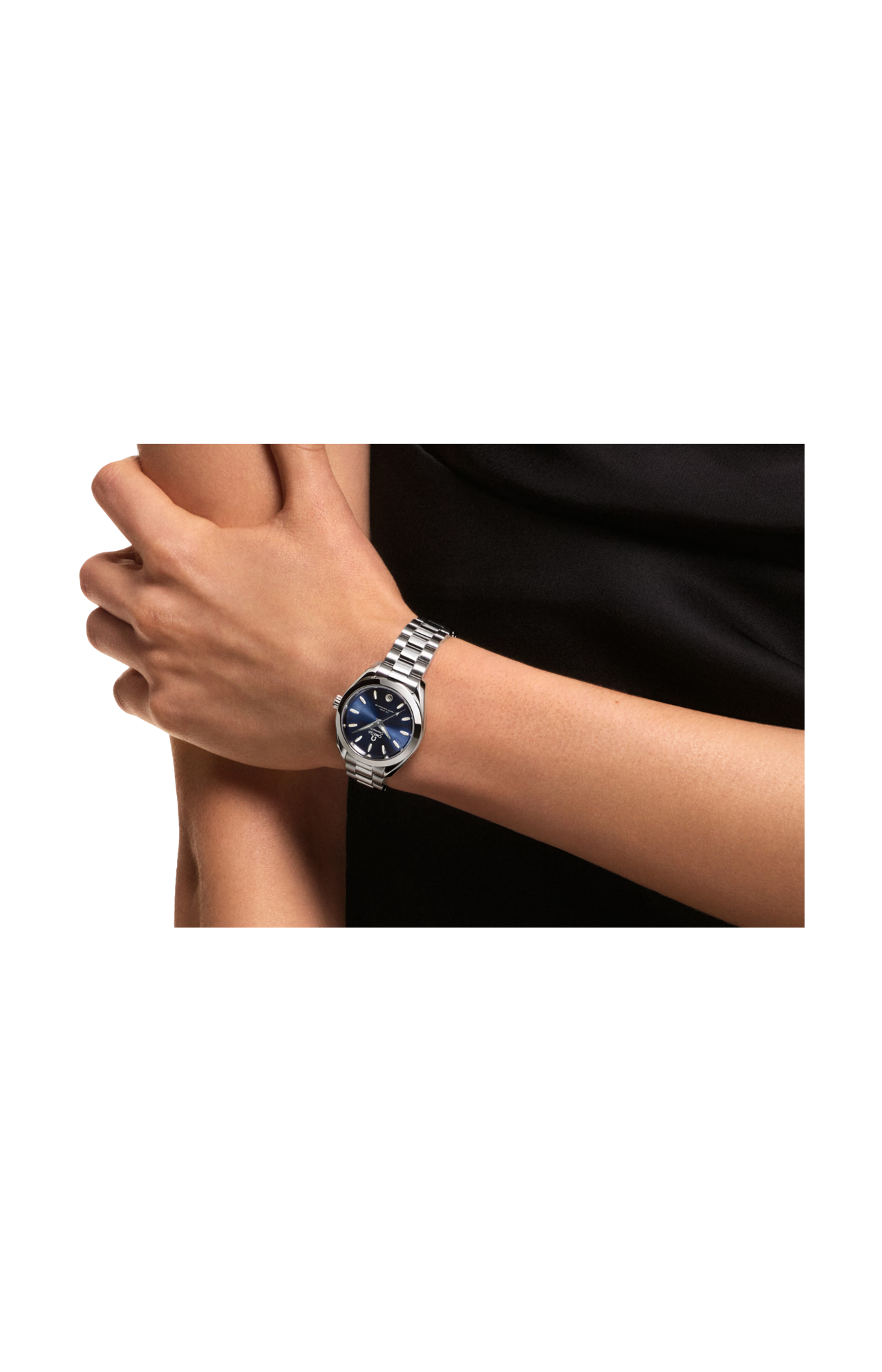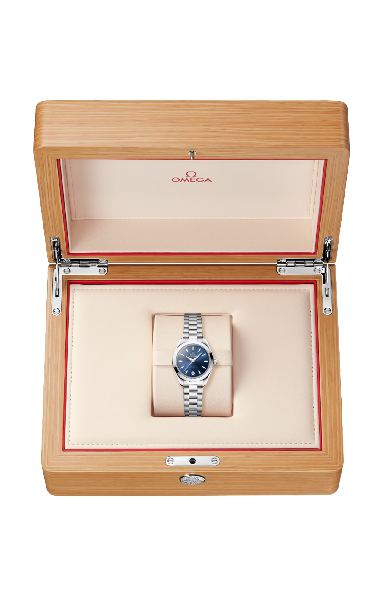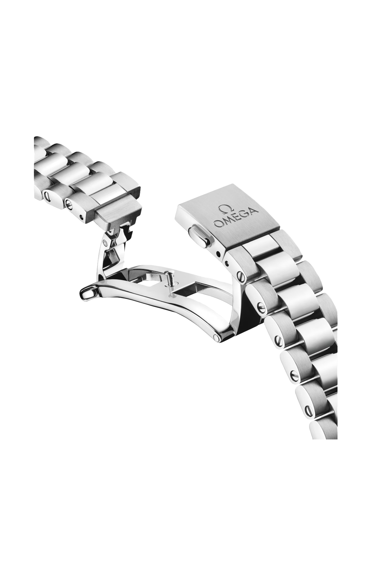 L’orologio è corredato da un bracciale integrato in acciaio inossidabile dotato di splendide maglie rotonde lucide e spazzolate, fibbia déployante con chiusura a farfalla e comodo sistema di regolazione Omega.