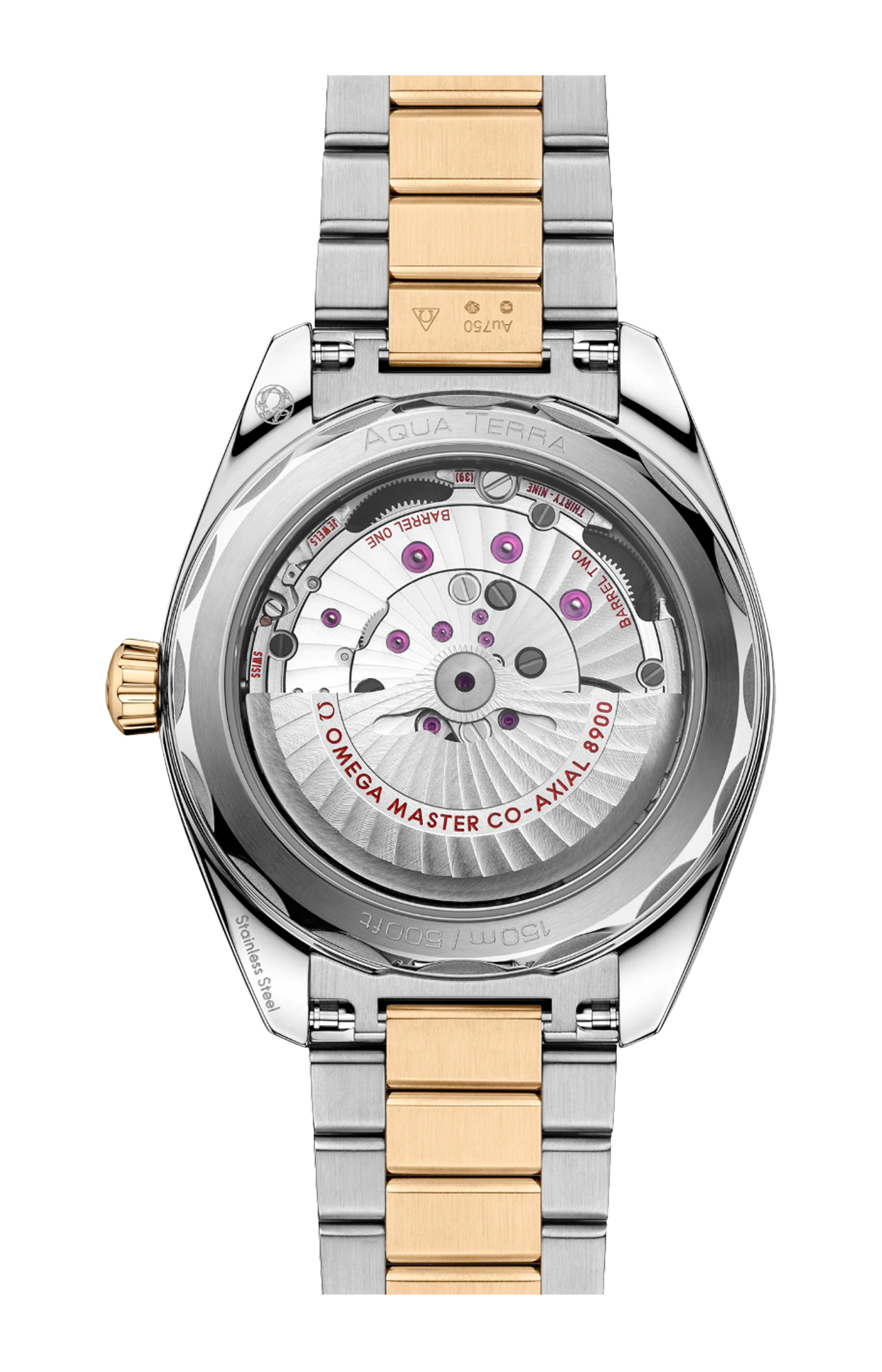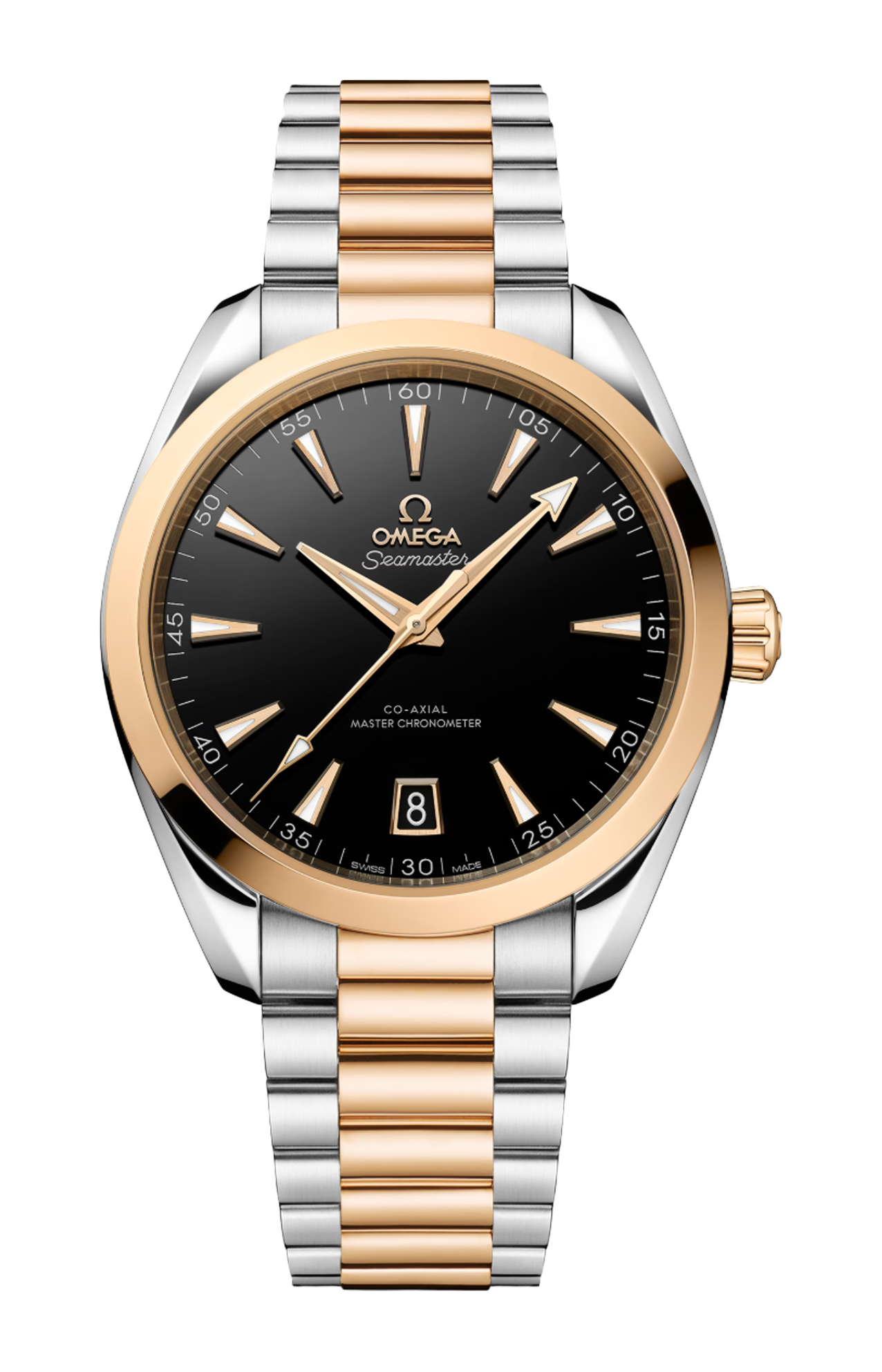 Il Seamaster Aqua Terra è un eccezionale tributo alla ricca tradizione marittima di Omega. Il modello da 41 mm presenta una cassa simmetrica in acciaio inossidabile e oro Moonshine™ 18K con fondello a vite e design con bordo ondulato.