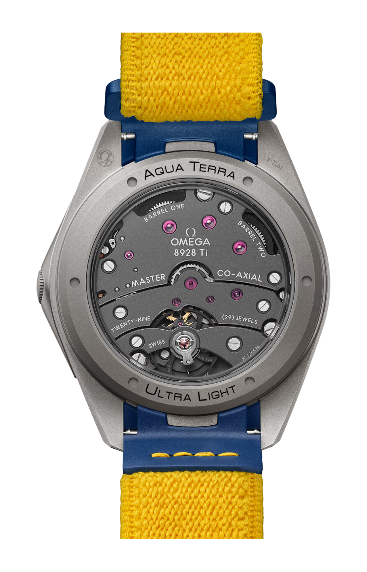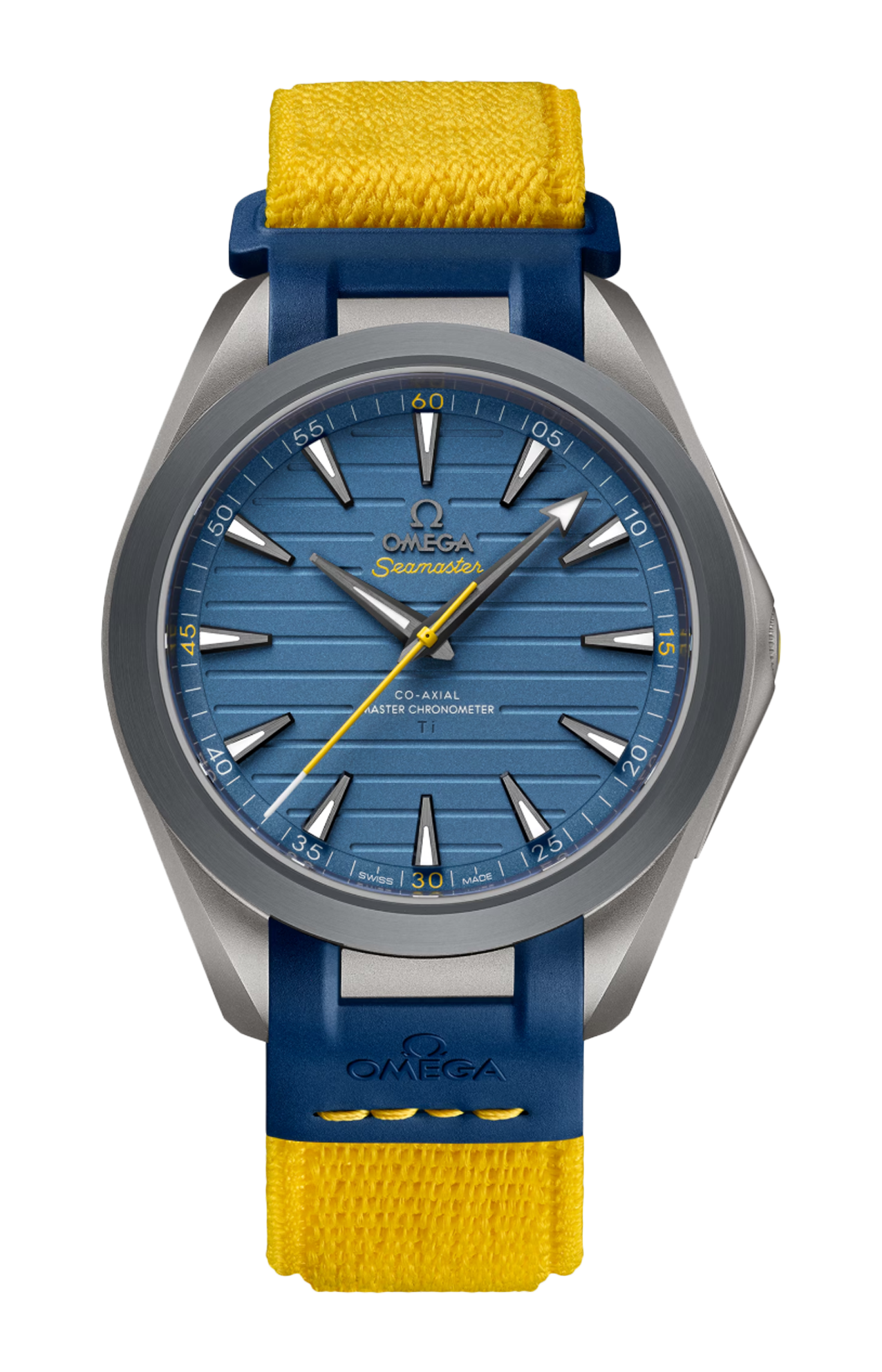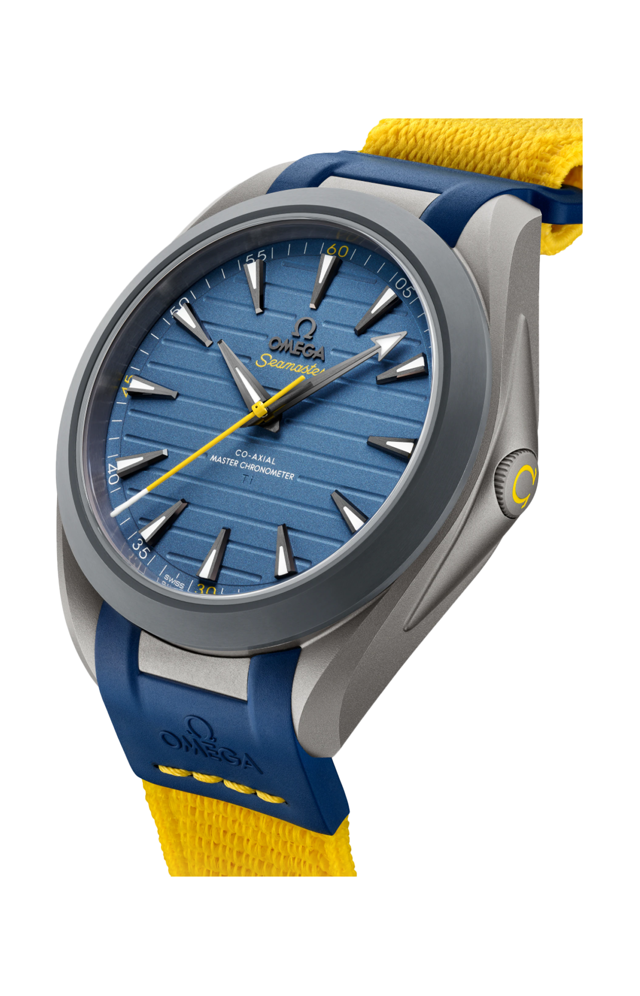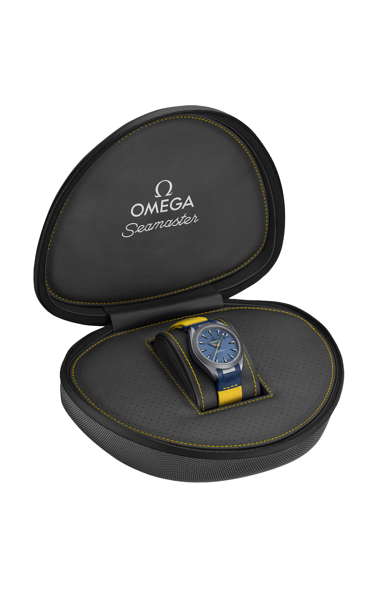 L’orologio è corredato da un cinturino integrato blu e giallo, realizzato in caucciù e nylon. Dietro il fondello in vetro zaffiro, si trova il calibro Omega Co-Axial Master Chronometer 8928 TI – per garantire i massimi standard del settore in termini di precisione, prestazioni e resistenza ai campi magnetici. L’intero orologio è consegnato all’interno di uno speciale cofanetto di presentazione.