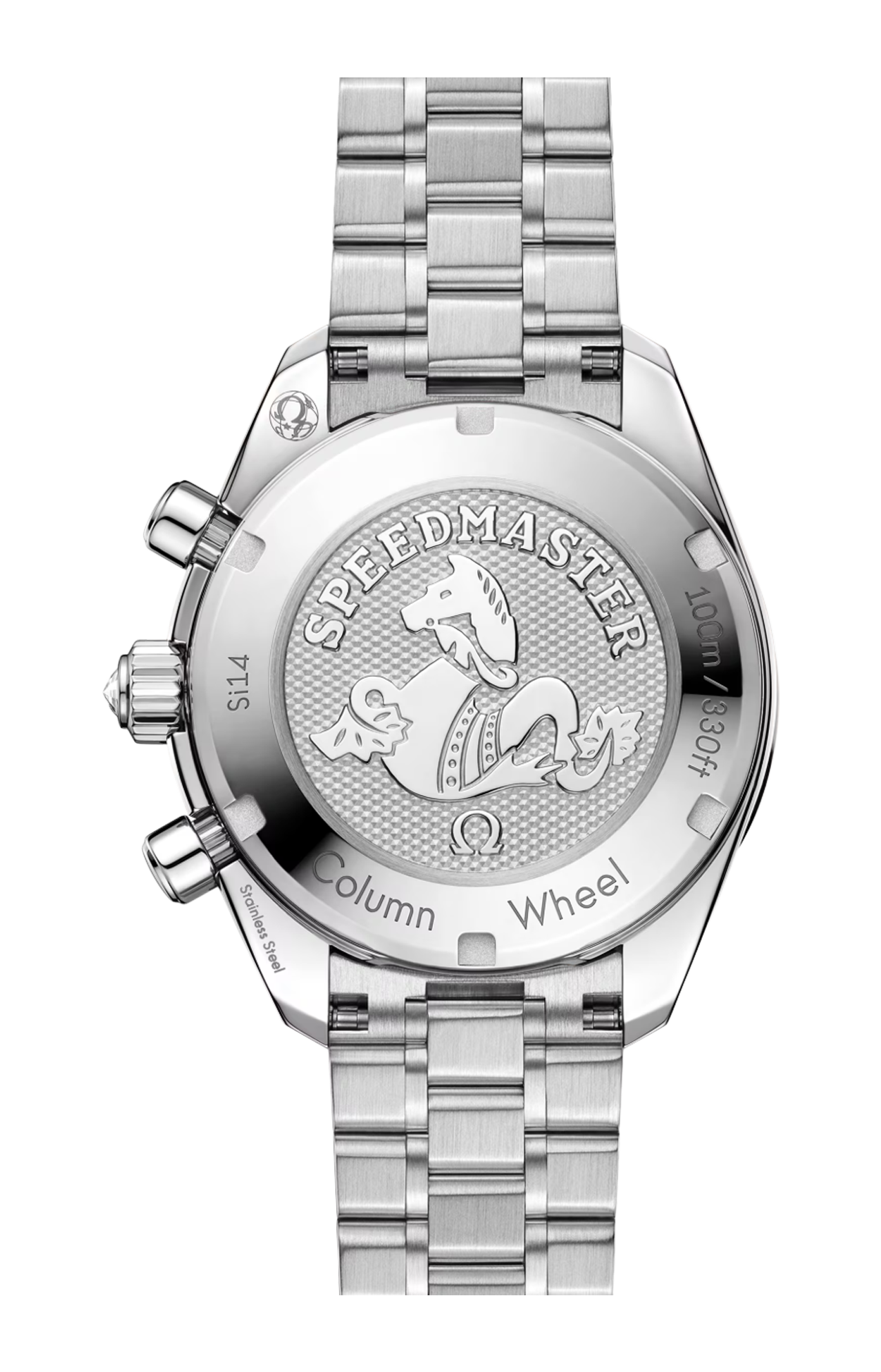 L'orologio vanta un bracciale in acciaio inossidabile lucido e spazzolato con comodo sistema di regolazione brevettato Omega. Il fondello a vite reca impresso un medaglione con ippocampo. Cuore pulsante dell'orologio è il calibro Omega Co-Axial 3330.