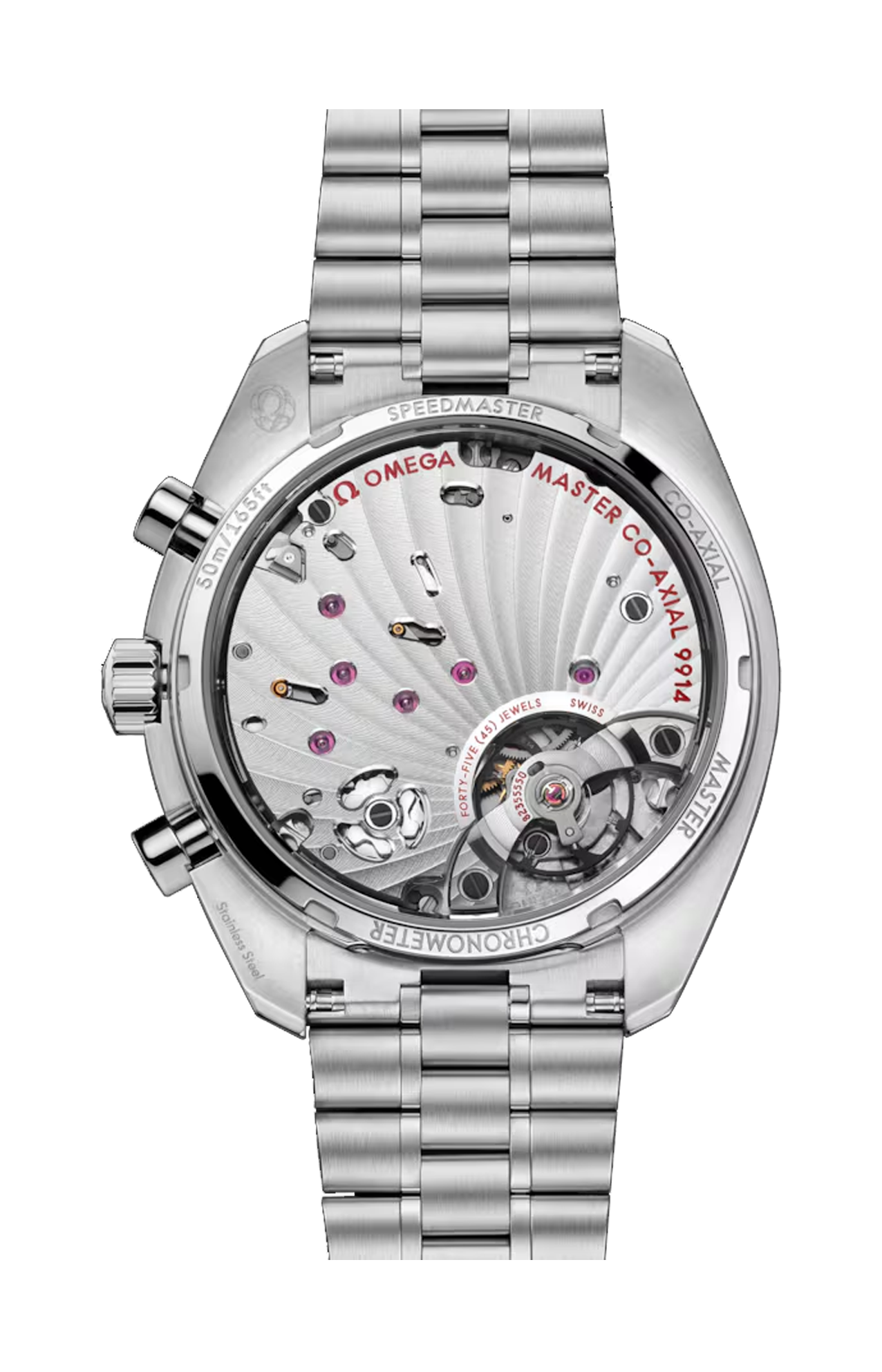 Anima l’orologio il calibro cronografico Omega Co-Axial Master Chronometer 9914 a carica manuale, ufficialmente certificato dal METAS.