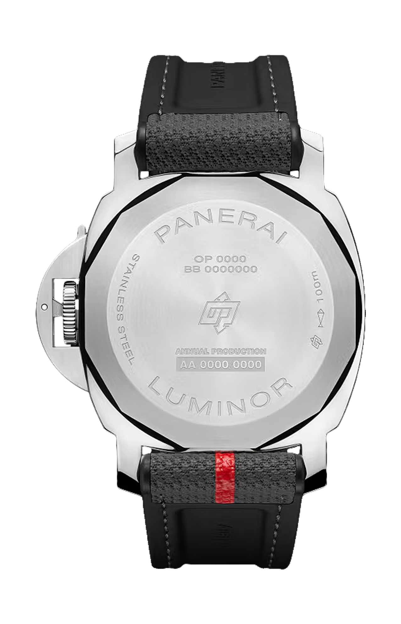 Calibro P.6000, un movimento a carica manuale con riserva di carica di 3 giorni. Include un ponte del bilanciere passante, che migliora la stabilità e la precisione delle prestazioni, e la funzione di arresto dei secondi, che consente una regolazione precisa dell'ora arrestando la lancetta dei secondi quando la leva della corona viene estratta. La cassa in acciaio da 44 mm, completa del caratteristico dispositivo proteggi-corona Panerai e di un quadrante grigio minimalista, racchiude un design sportivo-casual ispirato alla palette di colori del team Luna Rossa. La dedizione di Panerai alla creazione di strumenti di precisione è ulteriormente dimostrata dall'impiego di ricerca all'avanguardia, materiali innovativi e tecnologie avanzate. Impermeabile fino a 10 bar (~100 metri), l'orologio è stato rigorosamente testato, sottoponendolo a una pressione superiore del 25% rispetto al valore di impermeabilità garantito per garantire il rispetto dei rigorosi standard Panerai. Cassa in acciaio di 44 mm, secondo cinturino incluso in caucciù nero.