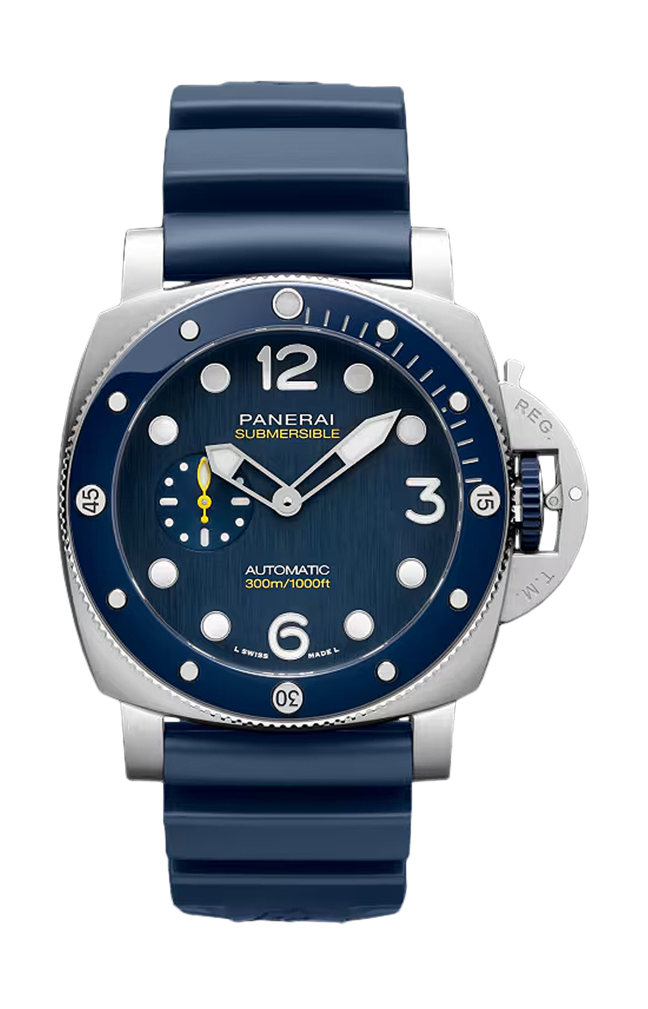 Con una cassa in acciaio satinato da 44 mm, un quadrante blu fumato e un calibro automatico P.900 con riserva di carica di 3 giorni, dotato di una lunetta girevole unidirezionale in ceramica blu lucida. Testato rigorosamente con una pressione superiore del 25% rispetto alla sua impermeabilità, il PAM01676 è progettato per resistere fino a 30 bar (~300 metri) di profondità. Secondo cinturino in tessuto blu.