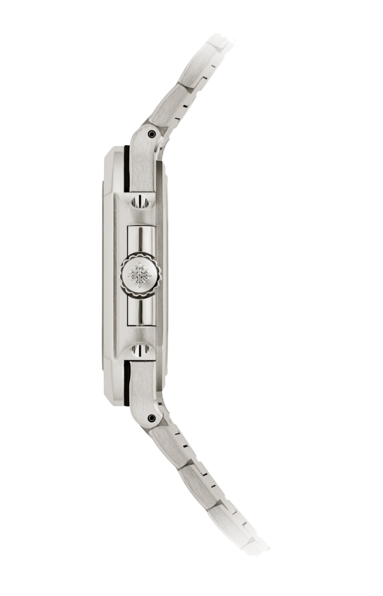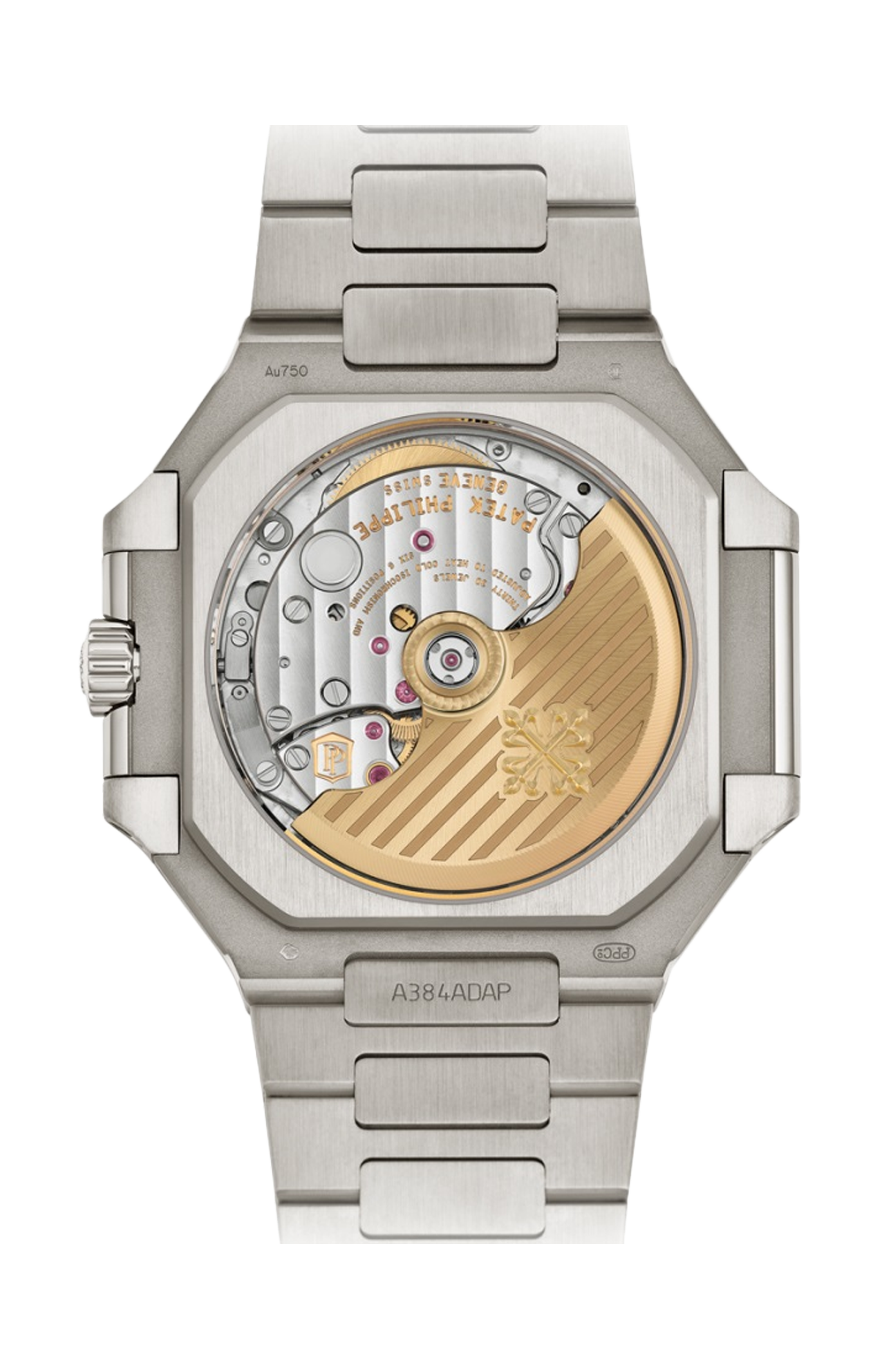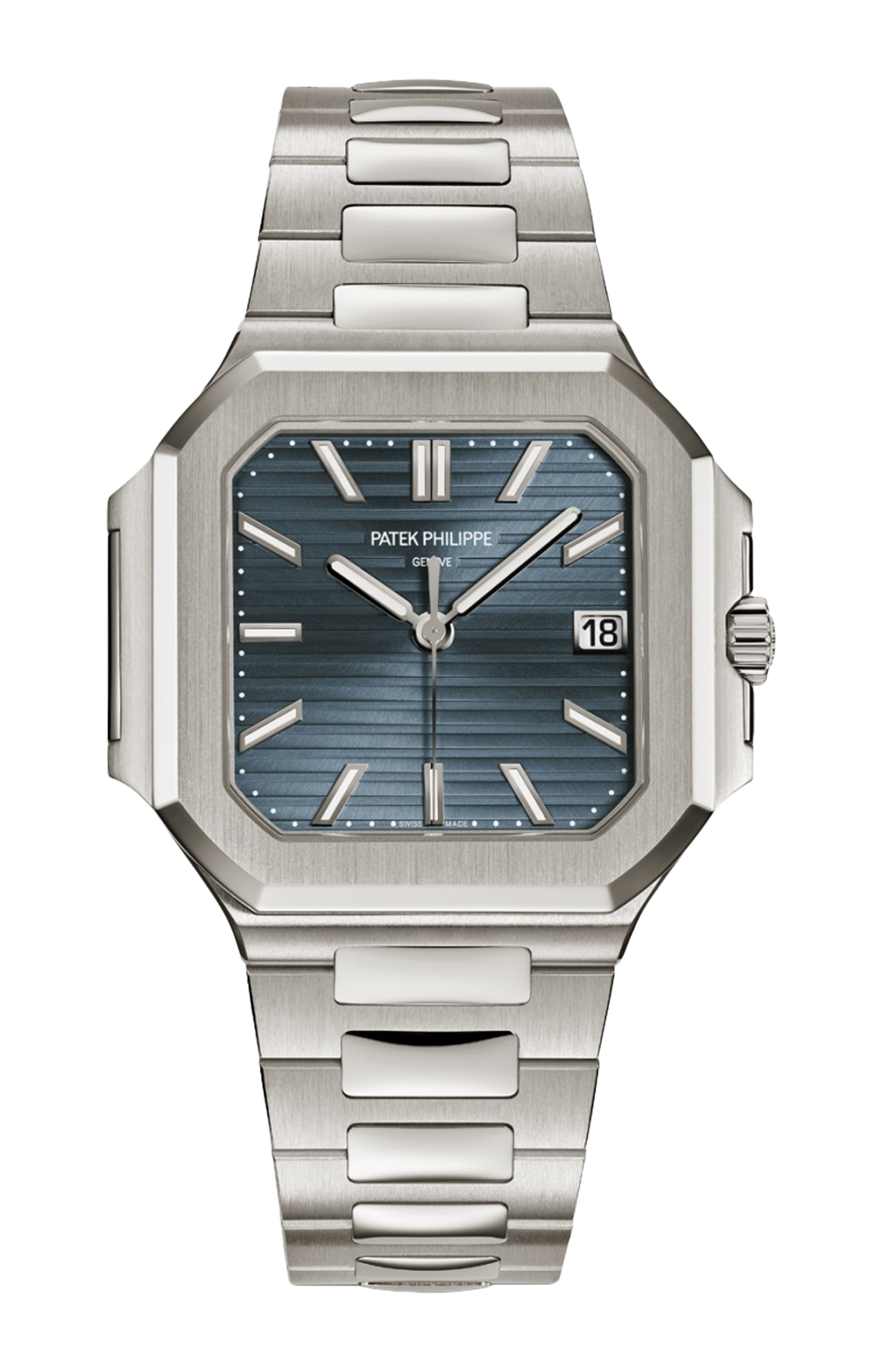Il Cubitus è proposto in una nuova versione taglia medium del diametro di 40 mm, che si adatta a ogni polso. La geometria inedita della cassa quadrata dagli angoli arrotondati e dal profilo elegante, in oro bianco, è sottolineata dal contrasto tra finiture lucide e “satinato verticale”. Il quadrante ornato da un motivo orizzontale a rilievo è impreziosito da una delicata tonalità blu-grigio soleil. Il calibro 26-330 S C a carica automatica è dotato di uno “stop secondi” che consente una regolazione dell’ora al secondo. Il bracciale in oro bianco è dotato di un sistema di regolazione bloccabile e di una fibbia déployante brevettata Patek Philippe con quattro punti di attacco indipendenti.