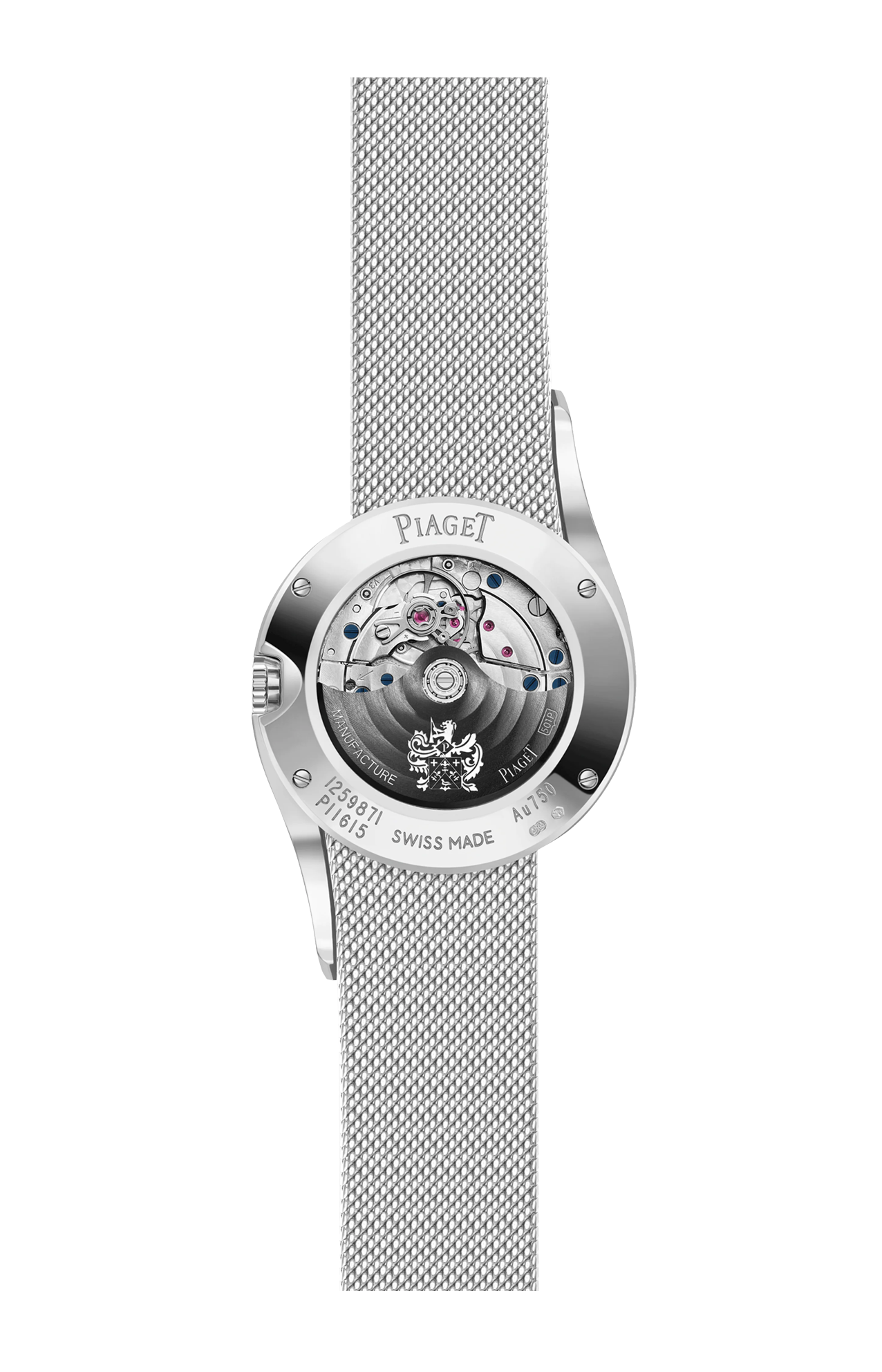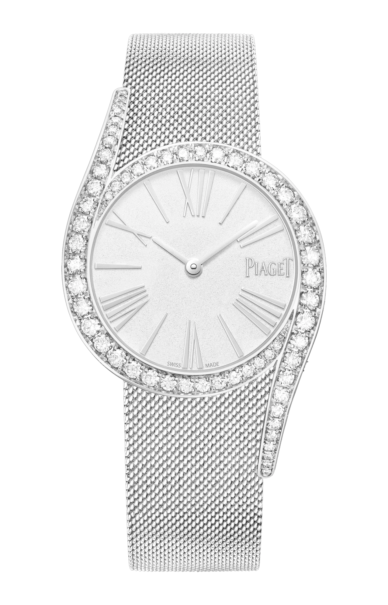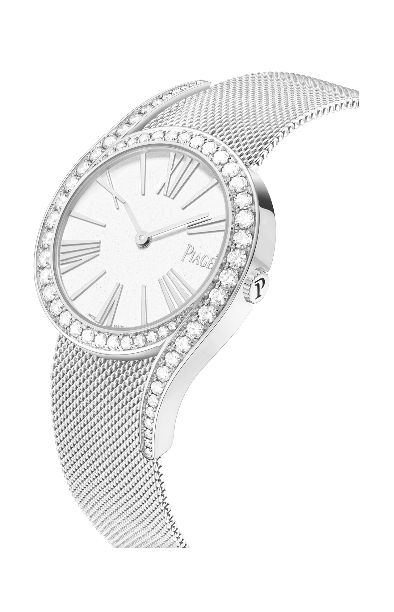Orologio Limelight Gala, 32 mm. Cassa in oro bianco 18 carati con 62 diamanti taglio brillante (circa 1,64 ct). Bracciale a maglia milanese in oro bianco 18 carati. Fibbia incastonata con un diamante taglio brillante (circa 0,01 ct). Fondello in vetro zaffiro. Movimento meccanico a carica automatica di manifattura 501P.