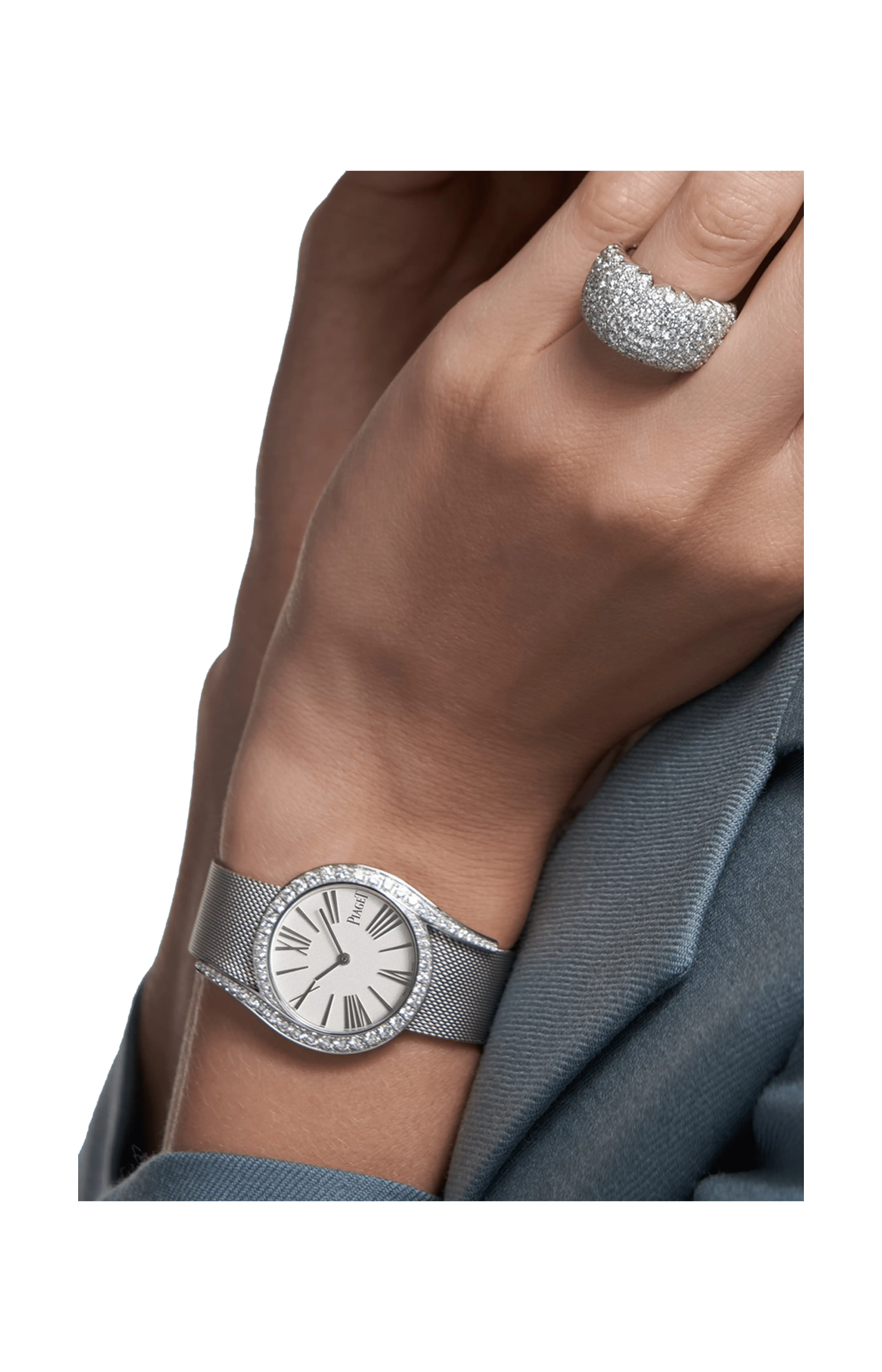 Scopri raffinatezza, stile ed eleganza senza pari con questo orologio in oro bianco con diamanti della collezione Limelight Gala, dotato di movimento a carica automatica 501P. Non potrai fare a meno di rimanere incantato da questo lussuoso orologio a carica automatica che sembra essere plasmato dalla luce pura. Un orologio meccanico con fondello in vetro zaffiro: lasciati incantare dai giochi di luce sul quadrante bianco testurizzato. Il quadrante è avvolto dalle anse allungate, caratteristiche distintive della collezione Limelight Gala. La cassa di questo lussuoso orologio da donna è tempestata di diamanti progressivi e irradia un glamour femminile. Il bracciale è in maglia milanese, che incarna la nostra competenza nella lavorazione dell'oro con il suo design fluido e confortevole. Abbraccia glamour, eleganza e luminosità con questo orologio in oro bianco e diamanti.