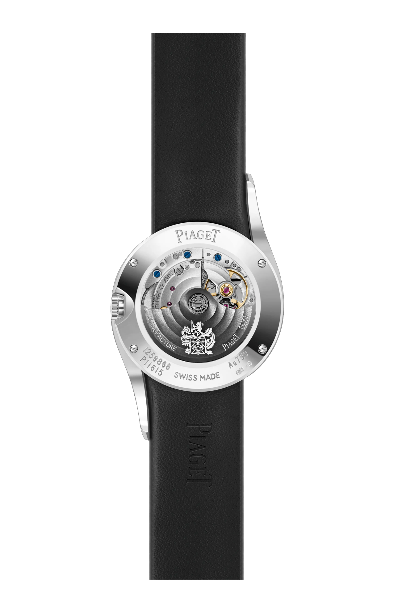 Il nuovo orologio da donna di Piaget può essere riassunto in tre parole: radioso, vivace e seducente. Elimina la linearità del tempo, collocandola invece su una curva di pura femminilità. La cassa rotonda da 32 mm è impreziosita da due eleganti anse allungate e la voluttà delle sue curve è esaltata sulla lunetta da una fila di diamanti tondi sfumati. L'aspetto puro del quadrante soleil conferisce un fascino contemporaneo e al tempo stesso classico, con i numeri romani applicati argentati e il cinturino in alligatore nero.