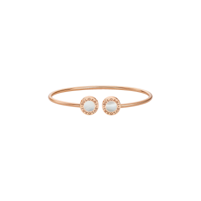 Rievocando le origini romane della maison, il bracciale BVLGARI BVLGARI in oro rosa 18 kt dà vita a un sofisticato connubio fra tradizione e modernità, stile e creatività. Ispirato alle iscrizioni incise lungo i bordi delle antiche monete romane, l'emblematico motivo circolare del gioiello è adornato da inserti in madreperla. Un modello dal fascino contemporaneo e dalla versatile eleganza. Bracciale BVLGARI BVLGARI in oro giallo 18 kt con inserti in madreperla.