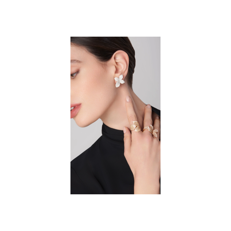 Un viaggio nella metamorfosi di foglie che volano come farfalle nel giardino segreto delle nostre vite. Alberi i cui rami sono come mani magiche nell'incanto di foglie sinuose. I giardini sono come l'anima femminile e sono fatti per essere scoperti e ammirati. Ispirati ai giardini segreti di Milano e ai suoi cortili misteriosi, questi luoghi magici raccontano storie di incontri segreti, arte e natura. Un omaggio a mondi femminili pieni di passione. Fiori, foglie e farfalle brillano sulle mani. Magia aggraziata e preziosa sulla pelle.