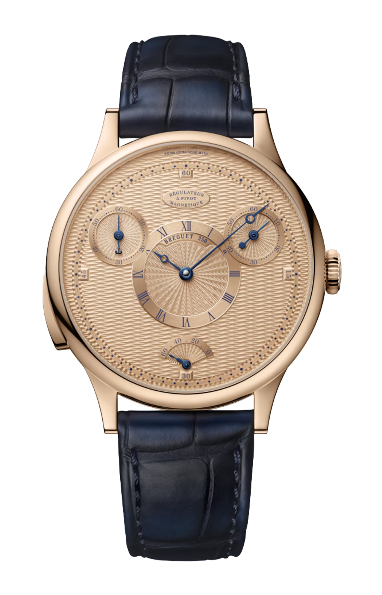 Il Breguet Classique Régulateur à Pivot Magnétique 7225BH/0H/9V6 è un segnatempo di alta orologeria che unisce innovazione tecnica, precisione assoluta e l’eleganza senza tempo tipica della Maison Breguet. La cassa rotonda in oro Breguet 18 K esprime un’estetica raffinata e classica, con finiture perfette che valorizzano la silhouette essenziale e armoniosa della collezione Classique. Il quadrante è caratterizzato da una disposizione “régulateur” unica nel suo genere: ore, minuti e piccoli secondi sono disposti su assi separati, con i minuti al centro, le ore in un sottocontatore e i piccoli secondi in un altro, per una leggibilità estremamente chiara e un design di grande equilibrio visivo. Indici e numeri Breguet elegantemente curvati accompagnano le lancette sottili in acciaio azzurrato, espressione del raffinato savoir-faire estetico del marchio.