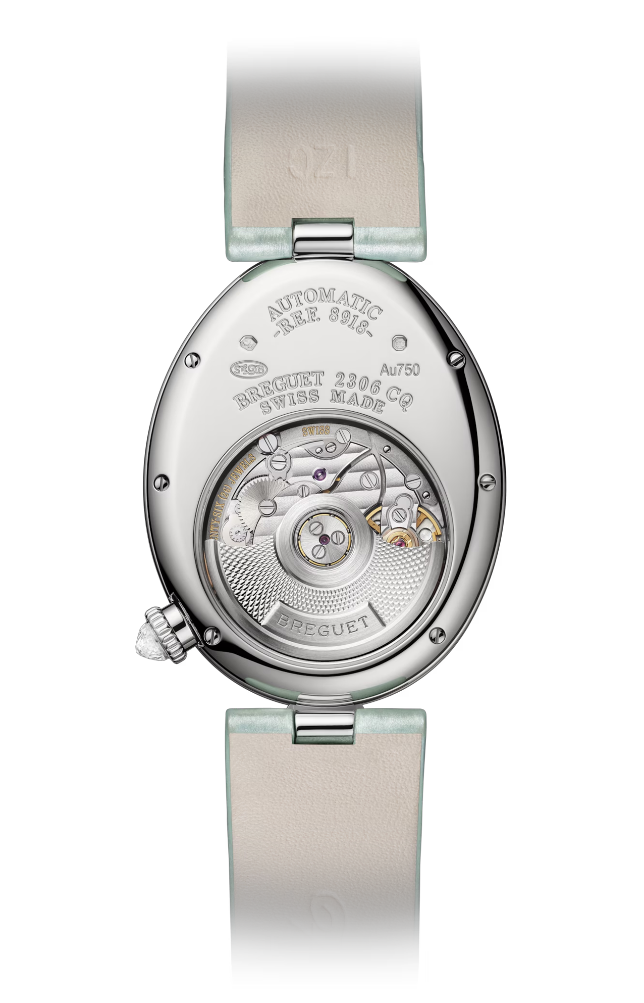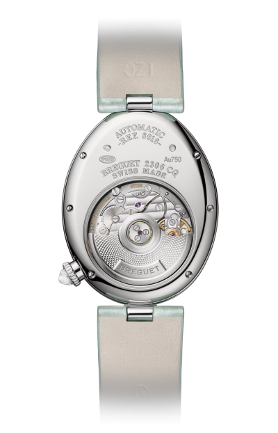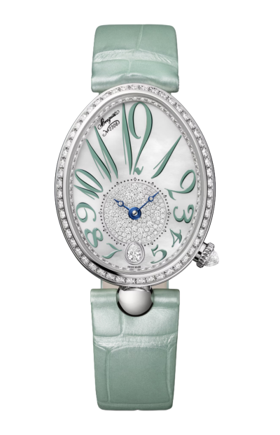 Il Breguet Reine de Naples 8918BB/5D964D0 è un segnatempo di straordinaria eleganza che incarna l’essenza della femminilità e dell’alta orologeria, frutto della tradizione e del savoir-faire unico della Maison Breguet. La cassa ovale in oro bianco 18 K, dalle linee morbide e armoniose, è impreziosita da una lunetta tempestata di diamanti taglio brillante di altissima qualità, che catturano e riflettono la luce con una brillantezza intensa e raffinata, conferendo al segnatempo un aspetto prezioso e luminoso. Il quadrante in madreperla bianca, con la sua iridescenza naturale, è caratterizzato da numeri Breguet elegantemente curvati e da un motivo guilloché finemente lavorato, che crea profondità visiva e fascino discreto; le lancette sottili azzurrate aggiungono un tocco di sofisticata leggibilità. Il vetro zaffiro bombato antigraffio protegge e valorizza ogni dettaglio del quadrante conferendo chiarezza e resistenza. All’interno pulsa un movimento meccanico automatico di alta precisione, progettato per garantire affidabilità e prestazioni costanti, espressione dell’eccellenza tecnica della Maison. Il cinturino in pelle di alta qualità con fibbia ad ardiglione in oro bianco 18 K completa l’insieme con comfort e stile, rendendo questo segnatempo perfetto sia per momenti formali sia come simbolo di eleganza quotidiana. Il Reine de Naples 8918BB/5D964D0 è molto più di un orologio: è un gioiello d’alta orologeria che celebra la femminilità, la tradizione classica e una bellezza senza tempo.