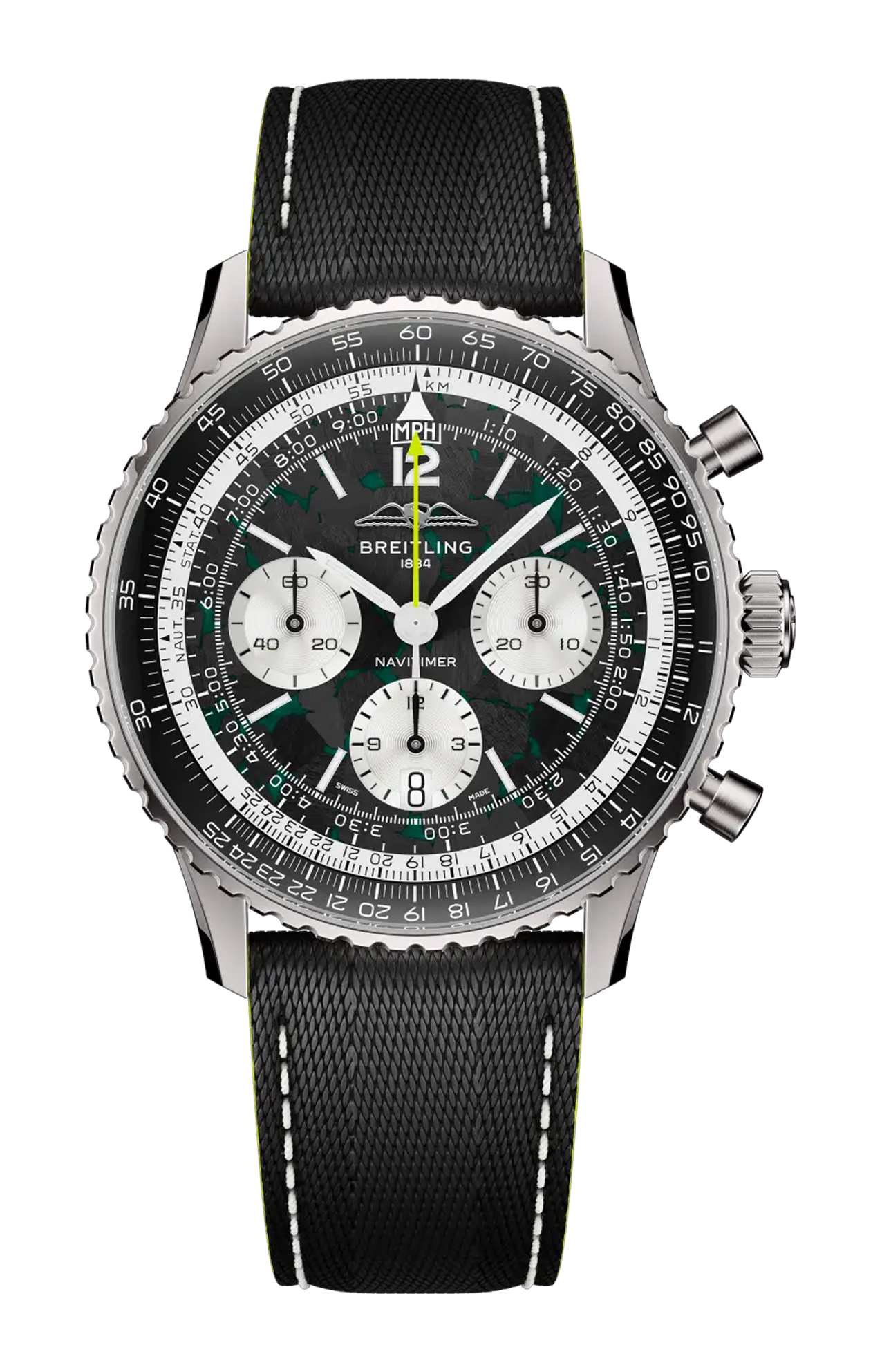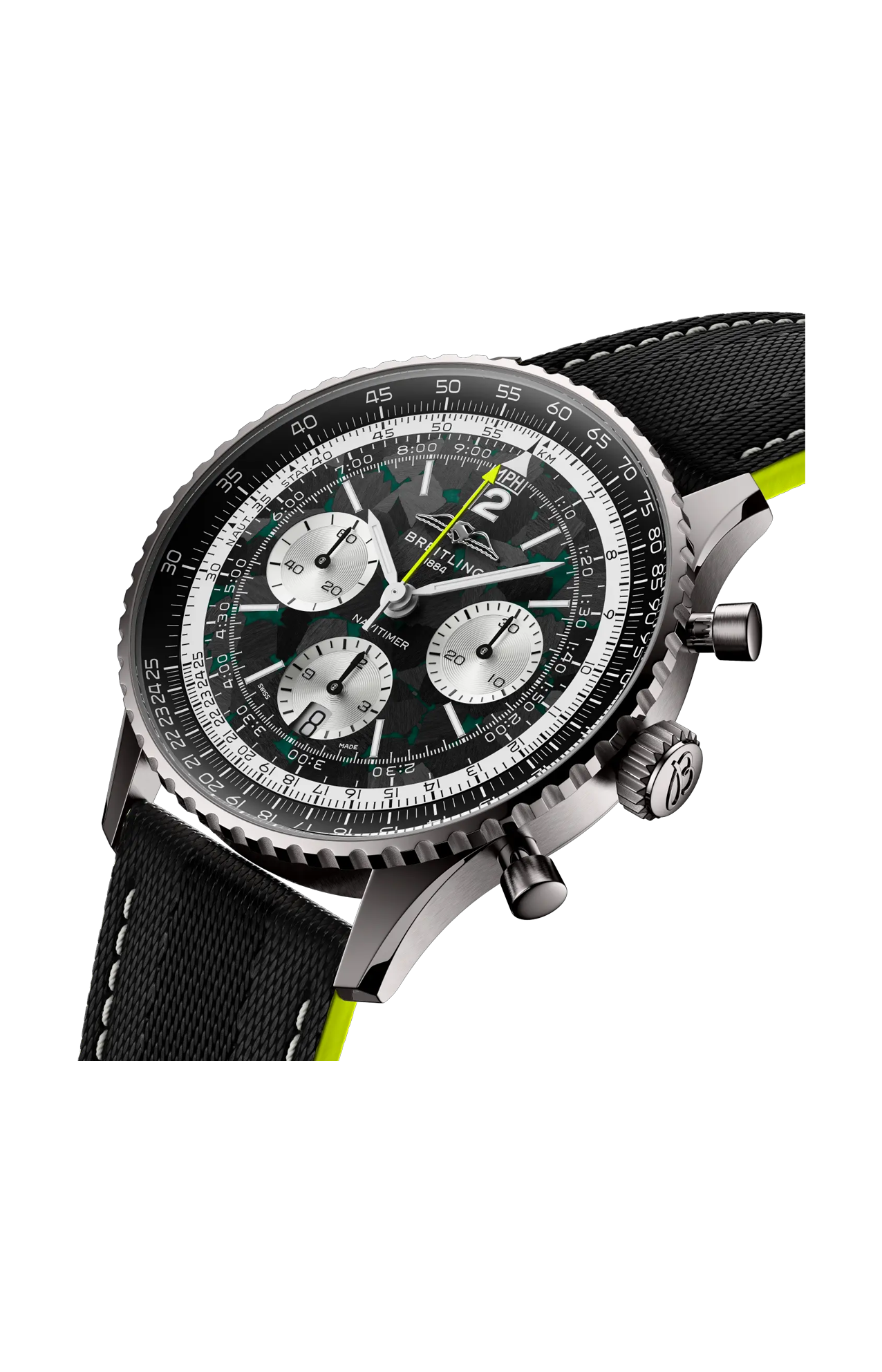 La partnership tra Breitling e Aston Martin Aramco Formula One™ Team prende vita in un Navitimer concepito per un mondo in cui i millisecondi contano. Il Navitimer B01 Chronograph 43 Aston Martin Aramco Formula One™ Team, limitato a 1.959 esemplari, celebra l'anno in cui Aston Martin ha debuttato in Formula 1. Racchiude in sé materiali di alta qualità, ingegneria di precisione e oltre 70 anni di tradizione Navitimer. Dal quadrante in fibra di carbonio alla cassa leggera in titanio fino ai dettagli ispirati all'abitacolo di un'auto da F1, ogni elemento è progettato per una precisione di cronometraggio assoluta anche sotto pressione. Girando l'orologio si rivela il suo motore, il calibro di manifattura Breitling 01 dotato di un rotore nero opaco appositamente sviluppato che porta il logo Aston Martin Aramco. Originariamente sviluppato come strumento per piloti, con un regolo calcolatore circolare per calcoli in tempo reale, il Navitimer è passato dal cielo al circuito, indossato dai piloti che esigevano la stessa precisione in pista.