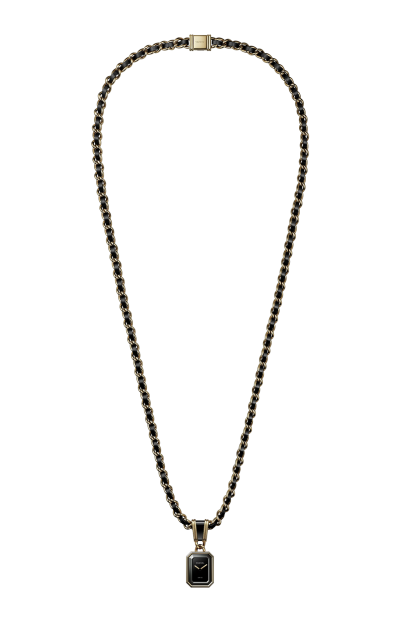 L’orologio CHANEL Collana-Première Catena Iconica Ref. H10331 è un segnatempo gioiello che fonde magistralmente eleganza alta moda e funzionalità, reinterpretando la celebre silhouette dell’iconico orologio PREMIÈRE in una forma di straordinaria raffinatezza da indossare come collana. La cassa ottagonale, simbolo distintivo della collezione PREMIÈRE ispirata alle forme architettoniche e al tappo del flacone del profumo N°5, è realizzata in acciaio placcato oro giallo 18 carati (0,1 micron). Il quadrante laccato nero offre una lettura elegante e pulita delle ore e dei minuti, con indici minimalisti che garantiscono immediatezza visiva e stile leggero. La catena iconica in acciaio placcato oro giallo 18 carati (0,1 micron) intrecciato con un nastro in pelle nera è pensata per essere indossata come collana, caratterizzata dal famoso motivo a catena che richiama l’estetica delle borse e degli accessori CHANEL, unendo design sartoriale e comfort. Il movimento al quarzo ad alta precisione assicura affidabilità e praticità quotidiana, perfetto per chi desidera un segnatempo che sia un vero e proprio oggetto di stile. Questo modello si adatta con naturalezza a look eleganti e quotidiani, diventando un accessorio distintivo che cattura lo sguardo e valorizza ogni outfit con un tocco di glamour senza tempo, incarnando lo spirito di lusso moderno e la raffinatezza artigianale firmata CHANEL.