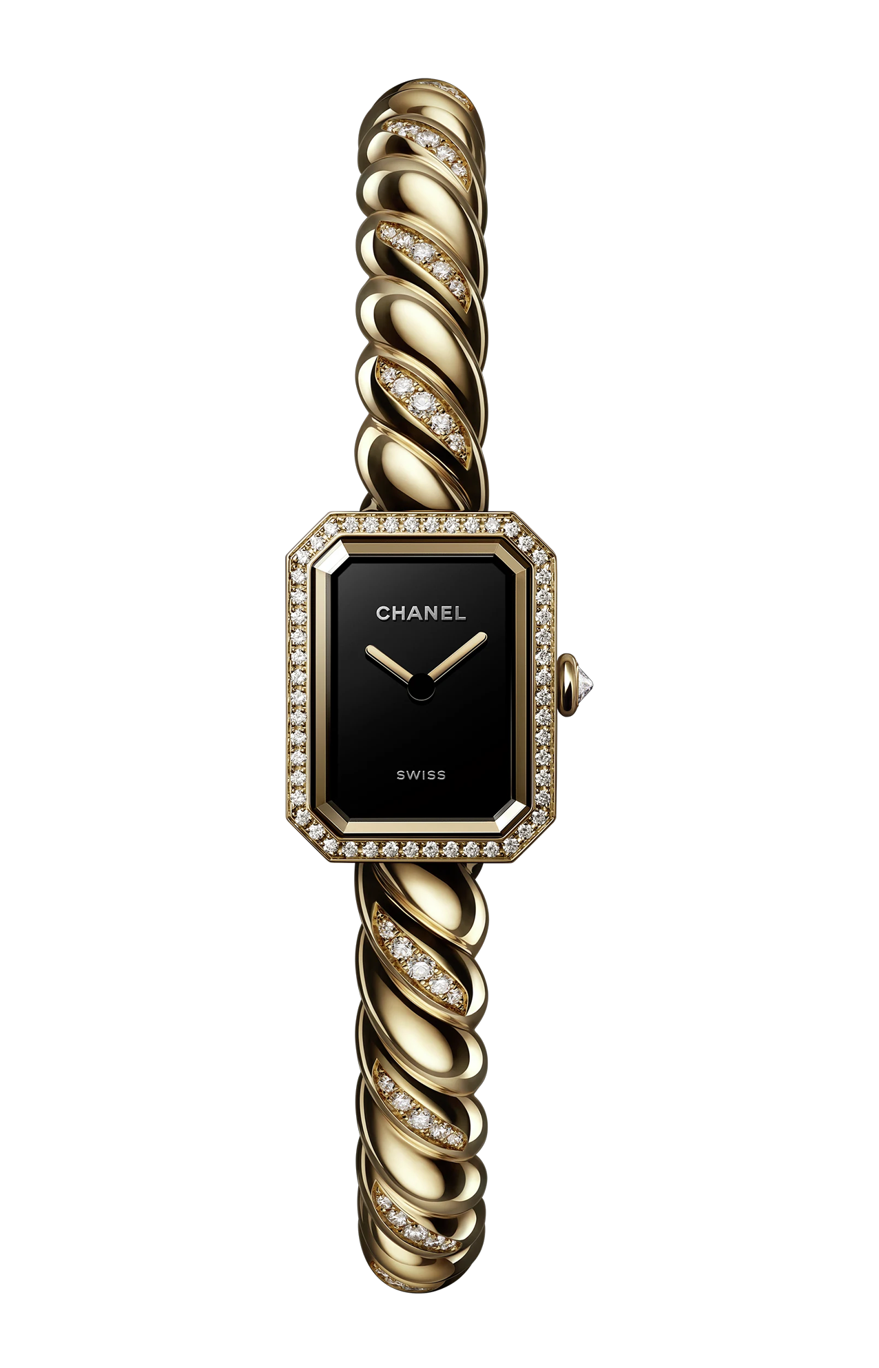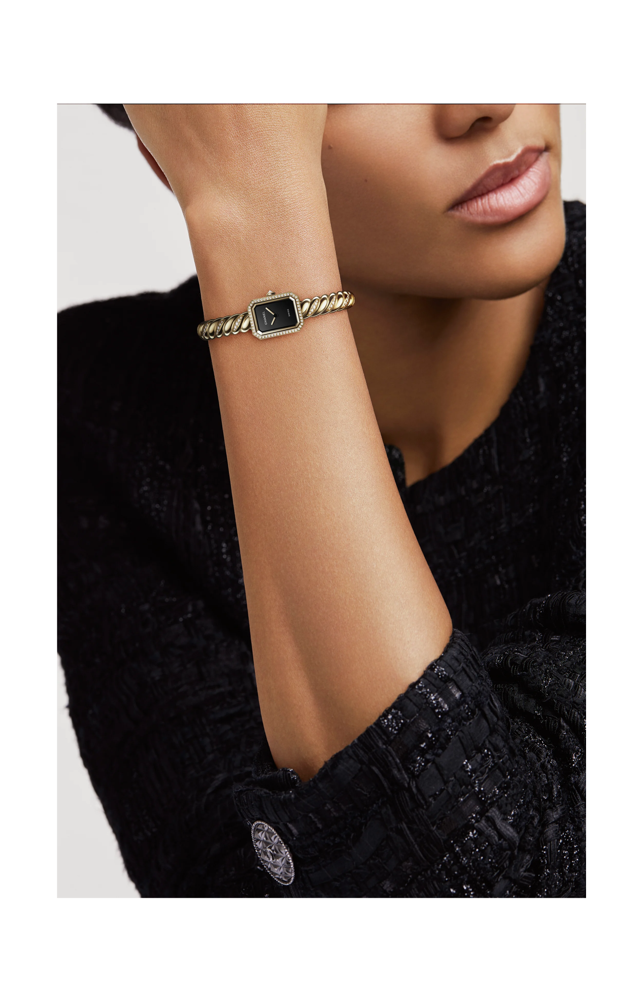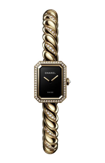 L’orologio CHANEL PREMIÈRE Galon Ref. H11049 è un segnatempo elegante e distintivo che unisce l’estetica sofisticata della Maison CHANEL a un design iconico dal carattere couture. La cassa ottagonale, ispirata alla forma del flacone del profumo N°5 e alla pianta della Place Vendôme, è realizzata in oro giallo 18 carati con 52 diamanti taglio brillante (~0,24 carati), offrendo un profilo raffinato e luminoso. Il quadrante nero laccato esprime profondità visiva ed equilibrio estetico. Il movimento al quarzo ad alta precisione garantisce affidabilità quotidiana e praticità d’uso, ideale per chi desidera un orologio elegante senza rinunciare alla comodità. Il bracciale e chiusura in oro giallo 18 carati con 65 diamanti taglio brillante (~0,65 carati) a motivo “galon”, ispirato ai dettagli sartoriali dei tessuti couture CHANEL, unisce comfort e stile in un design unico che si distingue con discrezione sofisticata. Con impermeabilità fino a 30 metri, questo orologio è pensato per accompagnare chi lo indossa con eleganza in ogni momento della giornata, incarnando l’equilibrio perfetto tra lusso, stile contemporaneo e savoir-faire della Maison.