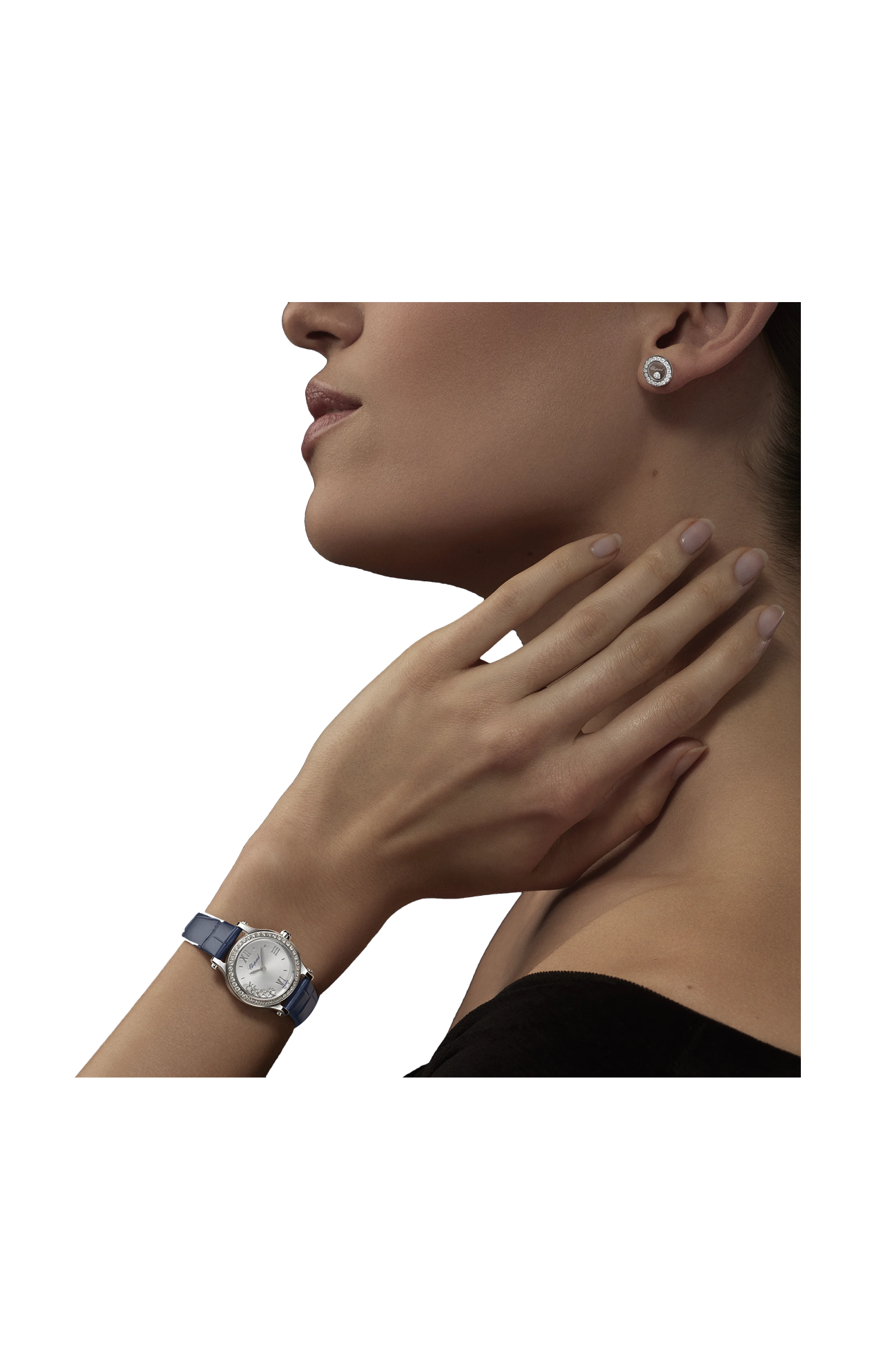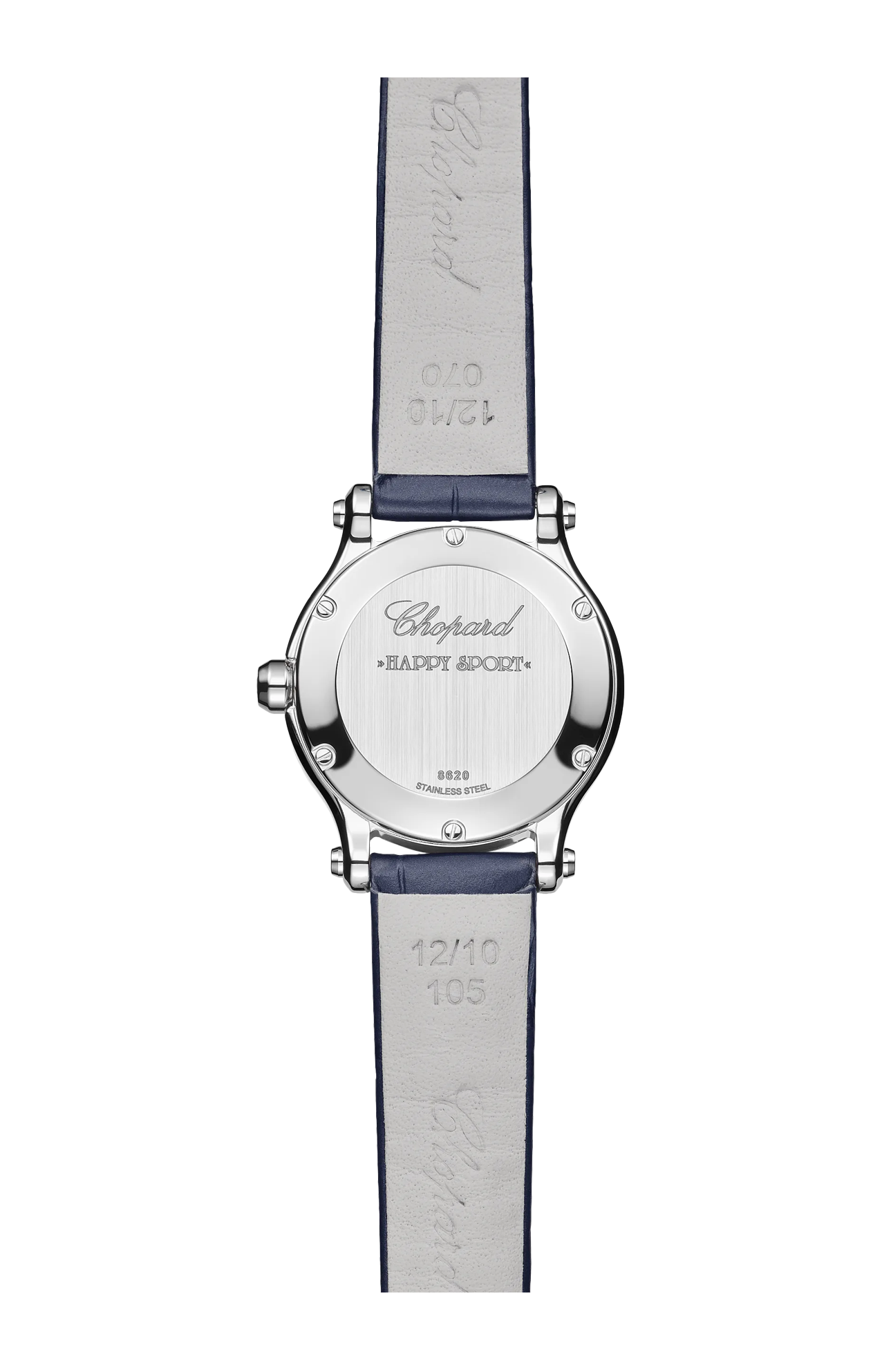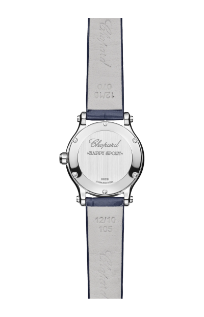 LA COLLEZIONE HAPPY SPORT È L'EMBLEMA DELLA CREATIVITÀ E DELL'AUDACIA DI CHOPARD. LE SUE GIOCOSE PIETRE PREZIOSE, CHE DANZANO LIBERAMENTE TRA DUE VETRI ZAFFIRO, FANNO SOGNARE SIN DAL 1993, QUANDO CHOPARD È DIVENTATA LA PRIMA MAISON A CONIUGARE ACCIAIO E DIAMANTI. LA GRANDE COMPETENZA OROLOGIERA HA CONSENTITO A CHOPARD DI DOTARE IL MODELLO HAPPY SPORT DA 33 MM DI UN MOVIMENTO MECCANICO A CARICA AUTOMATICA APPOSITAMENTE SVILUPPATO PER LE CASSE DEI MODELLI FEMMINILI. LITTLE DIAMONDS DO GREAT THINGS.