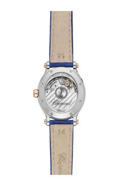 LA COLLEZIONE HAPPY SPORT È L'EMBLEMA DELLA CREATIVITÀ E DELL'AUDACIA DI CHOPARD. LE SUE GIOCOSE PIETRE PREZIOSE, CHE DANZANO LIBERAMENTE TRA DUE VETRI ZAFFIRO, FANNO SOGNARE SIN DAL 1993, QUANDO CHOPARD È DIVENTATA LA PRIMA MAISON A CONIUGARE ACCIAIO E DIAMANTI. LA GRANDE COMPETENZA OROLOGIERA HA CONSENTITO A CHOPARD DI DOTARE IL MODELLO HAPPY SPORT OVAL DI UN MOVIMENTO MECCANICO A CARICA AUTOMATICA APPOSITAMENTE SVILUPPATO PER LE CASSE DEI MODELLI FEMMINILI. LITTLE DIAMONDS DO GREAT THINGS.