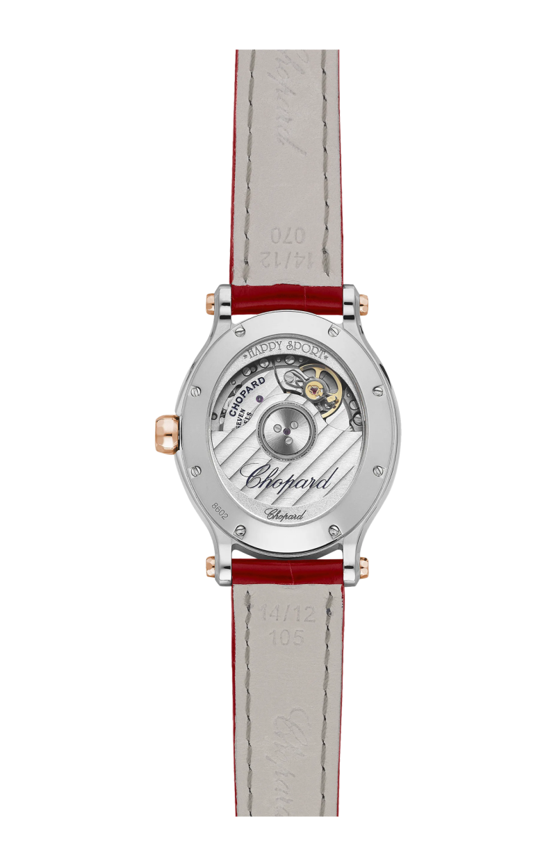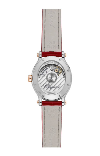 LA COLLEZIONE HAPPY SPORT È L'EMBLEMA DELLA CREATIVITÀ E DELL'AUDACIA DI CHOPARD. LE SUE GIOCOSE PIETRE PREZIOSE, CHE DANZANO LIBERAMENTE TRA DUE VETRI ZAFFIRO, FANNO SOGNARE SIN DAL 1993, QUANDO CHOPARD È DIVENTATA LA PRIMA MAISON A CONIUGARE ACCIAIO E DIAMANTI. LA GRANDE COMPETENZA OROLOGIERA HA CONSENTITO A CHOPARD DI DOTARE IL MODELLO HAPPY SPORT DA 30 MM DI UN MOVIMENTO MECCANICO A CARICA AUTOMATICA APPOSITAMENTE SVILUPPATO PER LE CASSE DEI MODELLI FEMMINILI. LITTLE DIAMONDS DO GREAT THINGS.