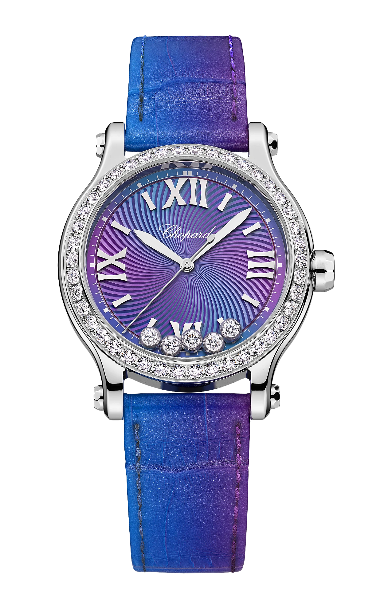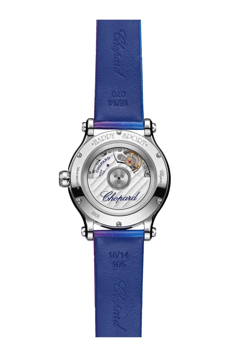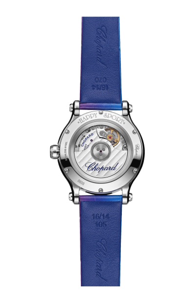 LA COLLEZIONE HAPPY SPORT È L'EMBLEMA DELLA CREATIVITÀ E DELL'AUDACIA DI CHOPARD. LE SUE GIOCOSE PIETRE PREZIOSE, CHE DANZANO LIBERAMENTE TRA DUE VETRI ZAFFIRO, FANNO SOGNARE SIN DAL 1993, QUANDO CHOPARD È DIVENTATA LA PRIMA MAISON A CONIUGARE ACCIAIO E DIAMANTI. LA GRANDE COMPETENZA OROLOGIERA HA CONSENTITO A CHOPARD DI DOTARE IL MODELLO HAPPY SPORT DA 33 MM DI UN MOVIMENTO MECCANICO A CARICA AUTOMATICA APPOSITAMENTE SVILUPPATO PER LE CASSE DEI MODELLI FEMMINILI. LITTLE DIAMONDS DO GREAT THINGS.