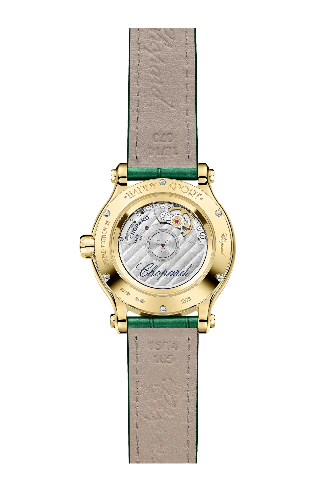 LA COLLEZIONE HAPPY SPORT È L'EMBLEMA DELLA CREATIVITÀ E DELL'AUDACIA DI CHOPARD. LE SUE VIVACI PIETRE PREZIOSE, CHE DANZANO LIBERAMENTE TRA DUE VETRI ZAFFIRI, FANNO SOGNARE SIN DAL 1993, QUANDO CHOPARD È DIVENTATA LA PRIMA MAISON AD ABBINARE ACCIAIO E DIAMANTI. GRAZIE AL SUO SAVOIR-FAIRE OROLOGIERO, CHOPARD HA DATO VITA A UN HAPPY SPORT DA 33 MM CON MOVIMENTO MECCANICO A CARICA AUTOMATICA APPOSITAMENTE SVILUPPATO PER LE CASSE DEI MODELLI FEMMINILI. DA PICCOLI DIAMANTI NASCONO GRANDI COSE.