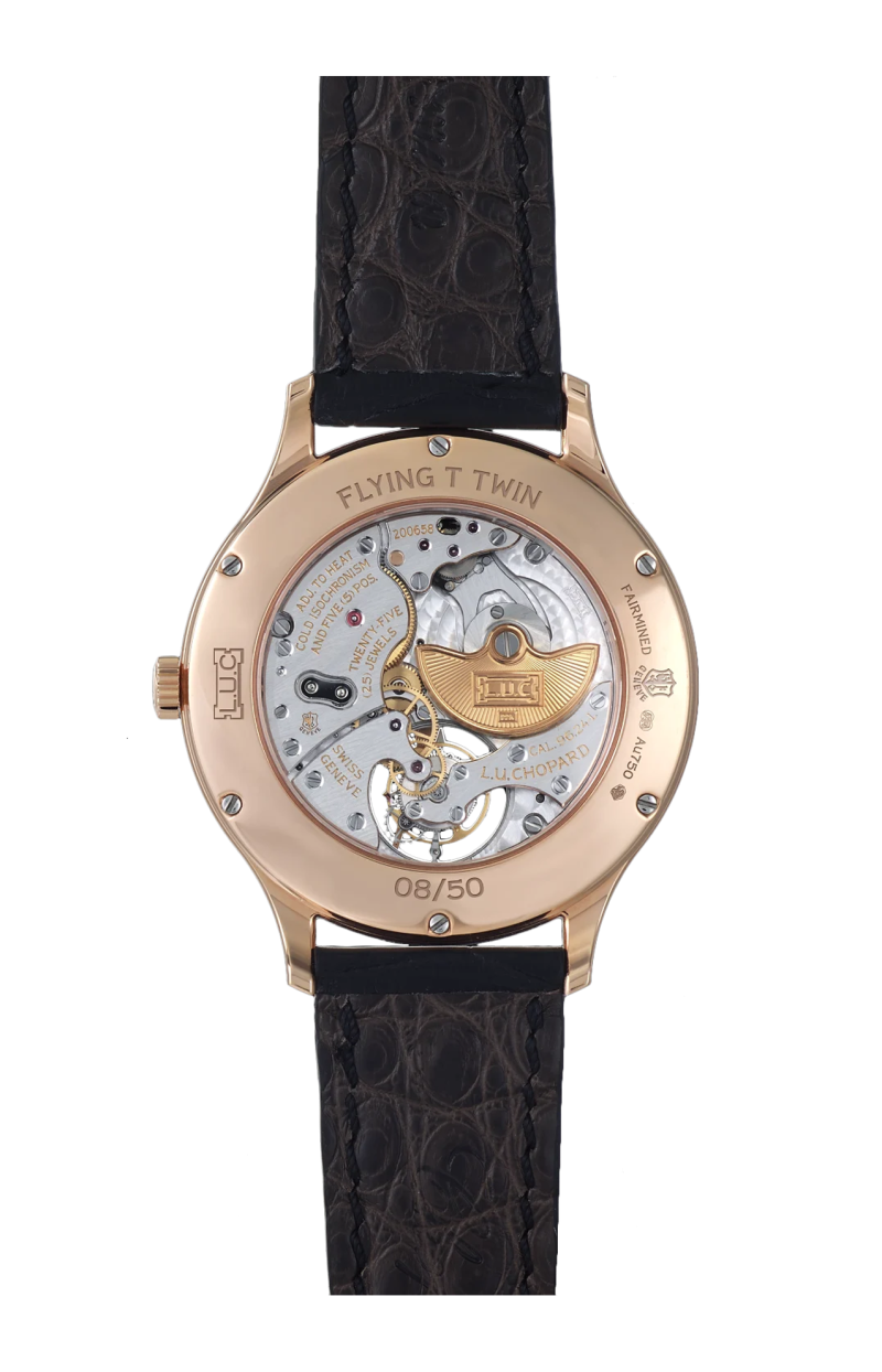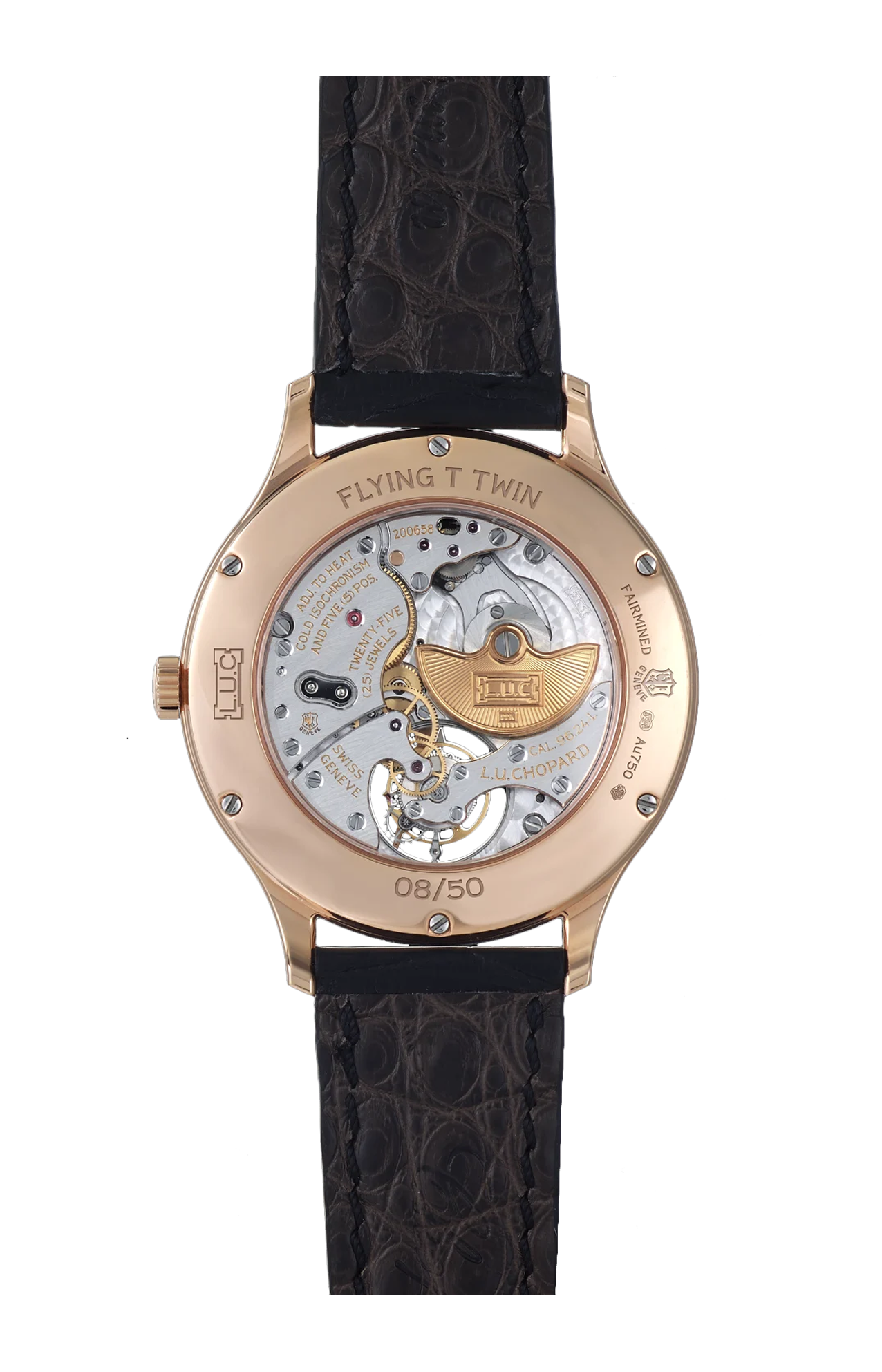 Con il nuovo segnatempo L.U.C Flying T Twin, Chopard inaugura il suo primo calibro con tourbillon volante. Puntando sia sulla tecnica, sia sull’estetica, l’orologio esibisce un look che non passa inosservato: quadrante in oro guilloché a mano, proporzioni impeccabili e una cassa ultrapiatta in oro etico rosa. Questo straordinario e raffinato orologio della collezione L.U.C è proposto in una serie limitata a 50 esemplari e vanta il punzone di Ginevra, per la gioia del gentleman contemporaneo appassionato di orologeria di ottima fattura.