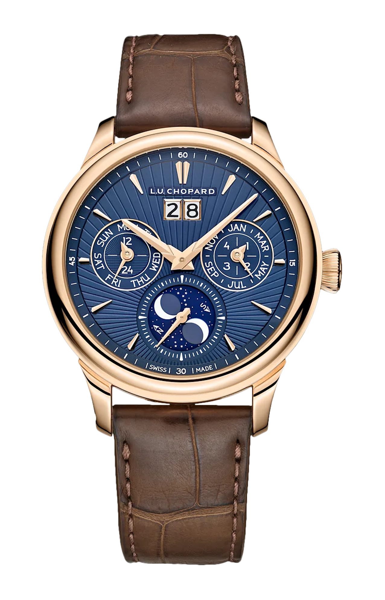 Presentato nel 2005 dalla manifattura Chopard come il primo modello con complicazione calendario, L.U.C Lunar One rimane l’unico segnatempo nella sua categoria dotato di una visualizzazione delle fasi lunari orbitali di precisione con finestrella rotante. Il movimento meccanico a carica automatica L.U.C calibro 96.13-L con calendario perpetuo e funzione astronomica delle fasi lunari, in grado di offrire un raro livello di precisione che garantisce una differenza di un solo giorno in 122 anni, anima due nuovi segnatempo il cui profilo è stato rivisitato in linea con la nuova estetica L.U.C. Racchiuso in una cassa in oro 18 carati da approvvigionamento responsabile del diametro di 40,5 mm, il quadrante è realizzato con una sapiente lavorazione guilloché eseguita a mano che si distingue per le indicazioni altamente leggibili, mentre l’ingegnoso sistema di cinturini intercambiabili offre una varietà di stili. Il movimento ha una precisione certificata come cronometro e le finiture di alta qualità dei due modelli L.U.C Lunar One hanno permesso ai segnatempo di ottenere il marchio di qualità del punzone di Ginevra.