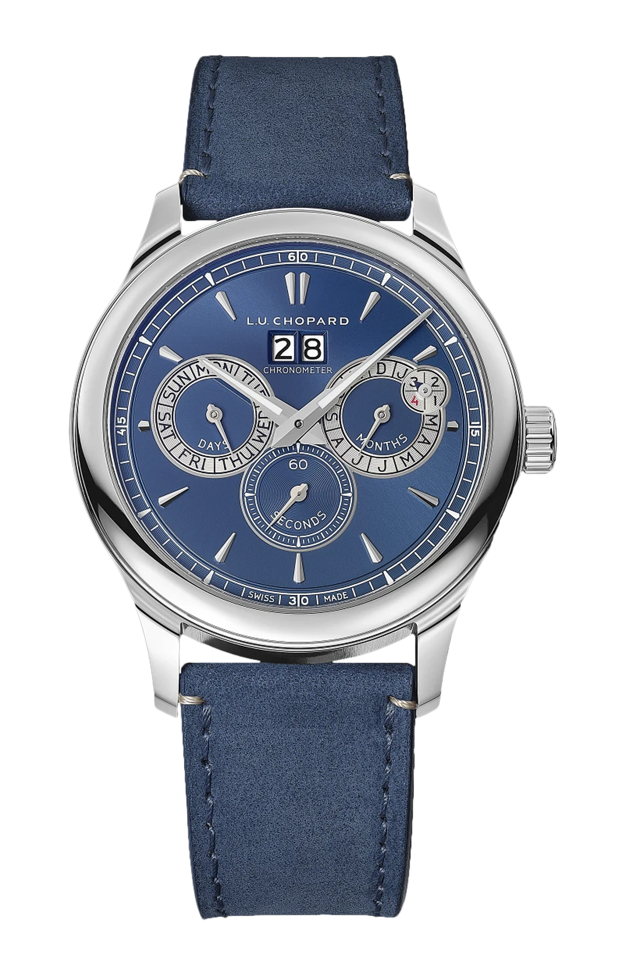 Un calendario perpetuo, che racchiude l'aspetto pratico e quello poetico, è l'estrema espressione di eleganza e ricercatezza richieste dal moderno gentleman. Quest'anno Chopard presenta il suo famoso calendario perpetuo, il L.U.C Perpetual Twin certificato cronometro, in una straordinaria versione in Lucent Steel™ con quadrante blu, che offre ai veri intenditori una nuova espressione di stile ingegnoso e raffinatezza orologiera.
