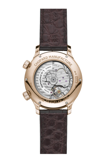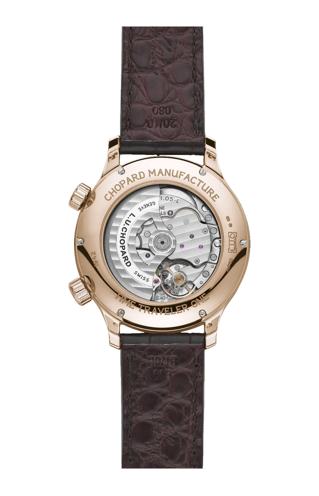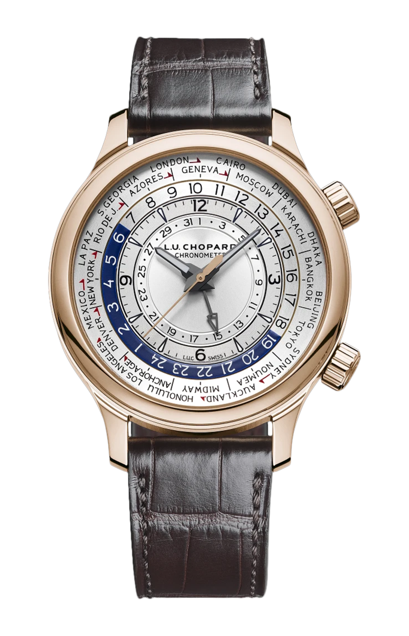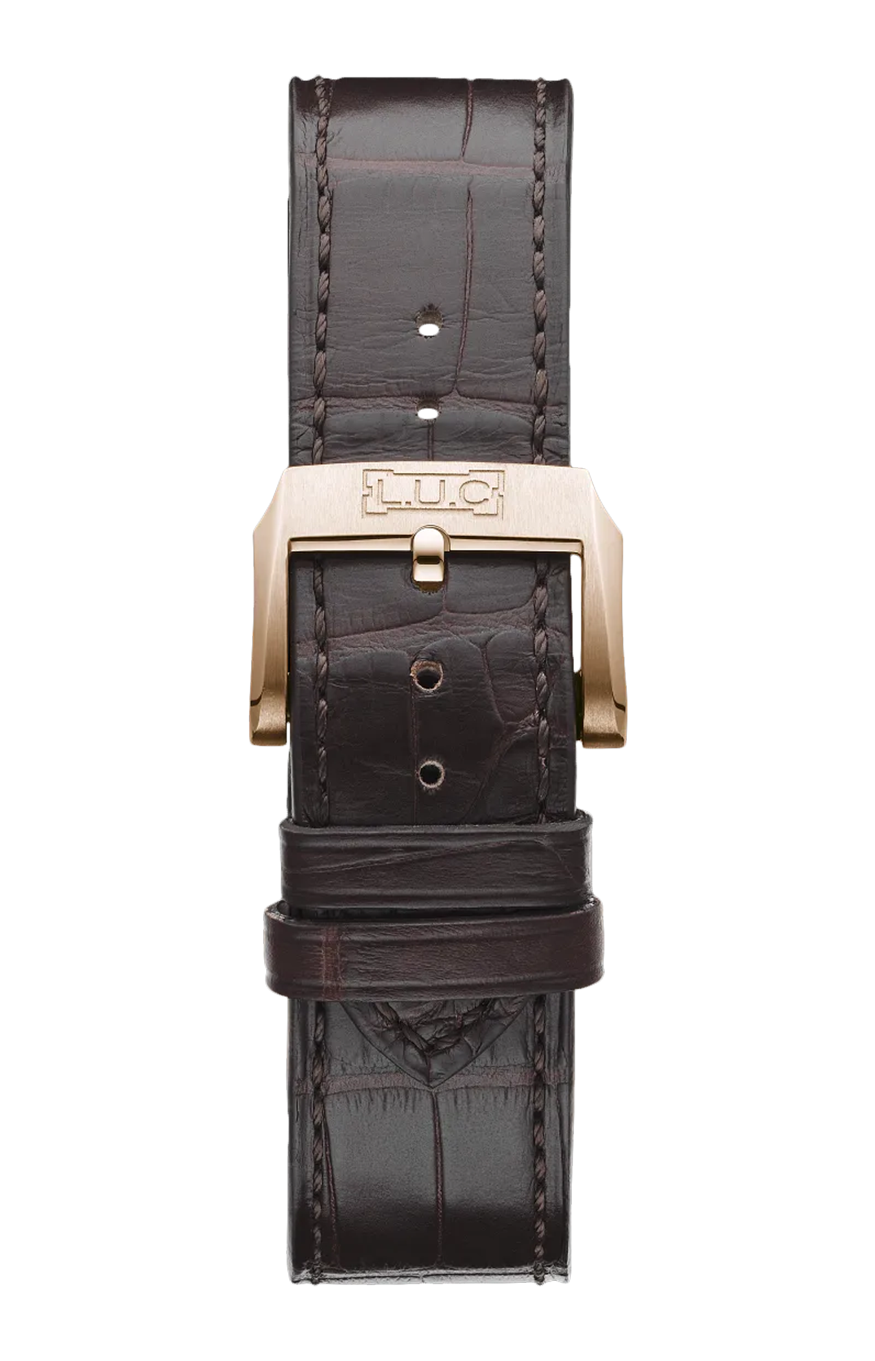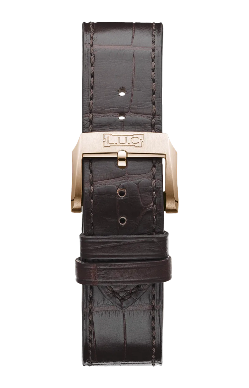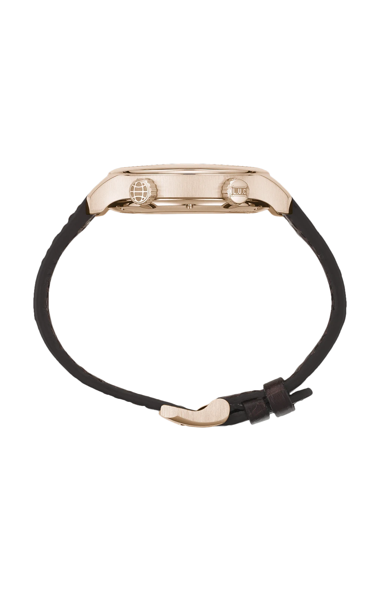 Eleganza impeccabile, qualità perfetta e sofisticazione tecnica d'avanguardia rendono gli orologi L.U.C i segnatempo ideali per il gentiluomo moderno che apprezza quanto di più raffinato la vita abbia da offrire. Ideale per i viaggiatori internazionali, l'orologio in oro rosa 18 carati L.U.C Time Traveler One vanta una complicazione che mostra contemporaneamente tutti i fusi orari.