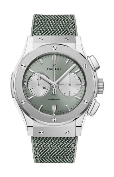 Il titanio è ampiamente utilizzato da Hublot, in particolare per la sua leggerezza. Presenta il miglior rapporto tra resistenza e peso di qualsiasi altro materiale, il che lo rende un materiale estremamente popolare soprattutto in ambito aeronautico. Si distingue anche per la sua resistenza alla corrosione e la sua inerzia a contatto con la pelle. Hublot utilizza solo titanio di alta qualità, grado 5, il più resistente in assoluto. Una volta lucidato, questo materiale mantiene una lucentezza metallica leggermente bluastra.