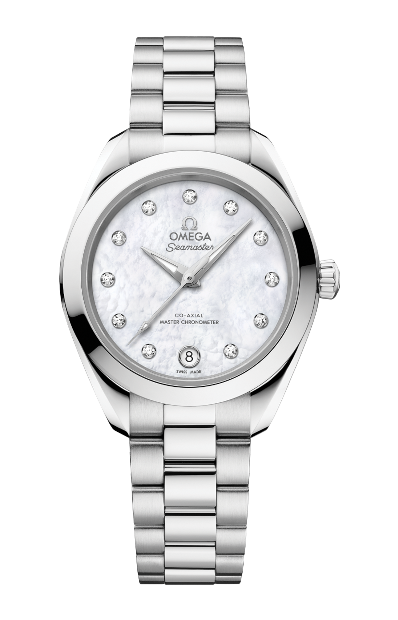 L’orologio è corredato da un bracciale integrato in acciaio inossidabile dotato di splendide maglie rotonde lucide e spazzolate, fibbia déployante con chiusura a farfalla e comodo sistema di regolazione OMEGA.