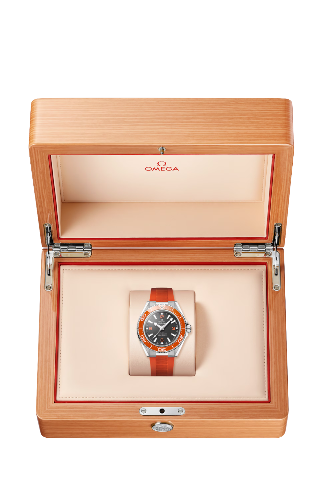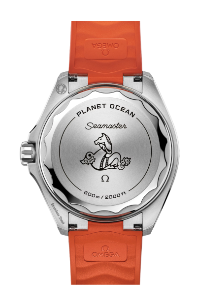 Animato dal calibro Co-Axial Master Chronometer 8912, questo Seamaster Planet Ocean è corredato da un cinturino in caucciù arancione con maglia in acciaio inossidabile che lo integra alla cassa e fibbia déployante. Sul retro dell’orologio, il fondello a vite è realizzato in titanio grado 5 lucido e spazzolato e riporta il celebre emblema dell’ippocampo OMEGA.
