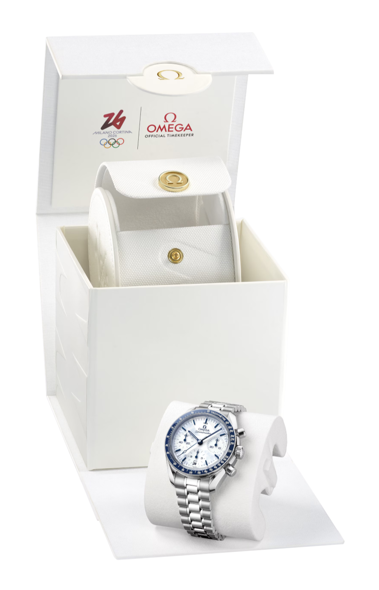 Tributo al ruolo di Omega come cronometrista ufficiale dei Giochi Olimpici Invernali, questo esclusivo orologio unisce il design senza tempo dello Speedmaster a dettagli unici pensati per omaggiare Milano Cortina 2026.