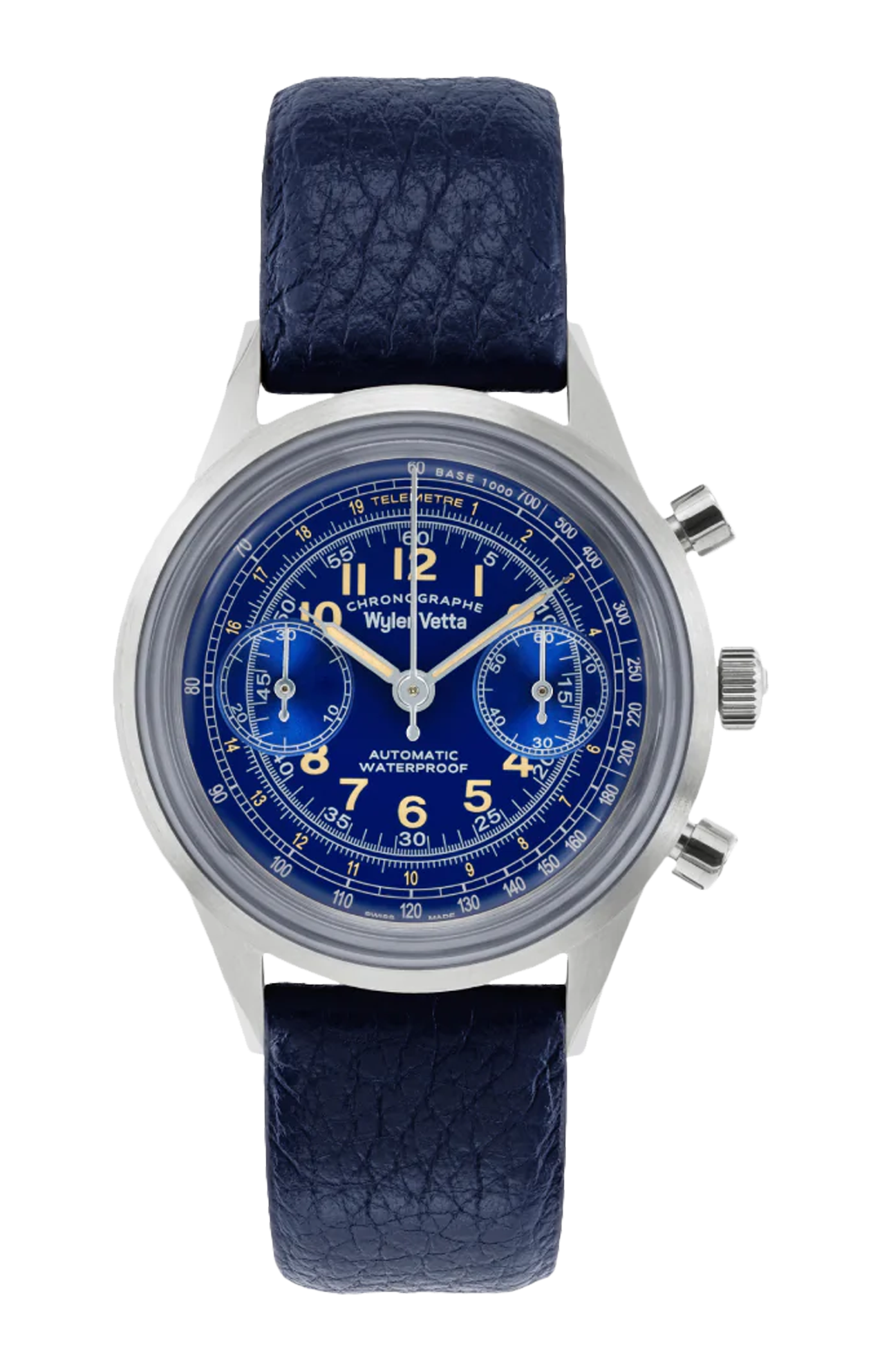 Con il nuovo modello cronografico unisex 36mm, Wyler Vetta riporta sul mercato il fascino dei crono degli anni Cinquanta, reinterpretati con dettagli moderni. Il cinturino in pelle dà un ulteriore tocco di raffinatezza all'orologio e di eleganza senza tempo e le sue varianti, disponibili in blu o cuoio, donano una versatilità unica al segnatempo.