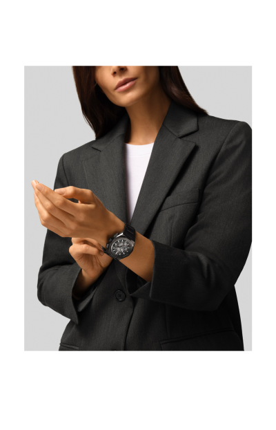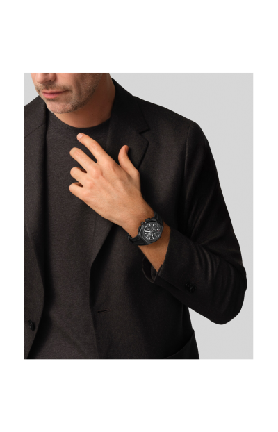 Ispirandosi al gioco di luci e ombre dei paesaggi urbani moderni, ZENITH lancia una straordinaria interpretazione del DEFY Skyline Chronograph in ceramica nera con quadrante grigio sfumato. Oltre a offrire resistenza e profondità, la ceramica, a colorazione integrale, conferisce struttura all’ombra, esaltando l’intensità architettonica della cassa. Caratterizzato dall’iconico motivo a stella a quattro punte inciso e da tre contatori cronografici, questo segnatempo è animato dal movimento cronografico ad alta frequenza El Primero 3600 e offre un’estrema precisione al 1/10 di secondo. Il bracciale in ceramica nera può essere sostituito con il cinturino in caucciù nero coordinato grazie al meccanismo di cambio sostituzione del cinturino, per una maggiore versatilità.