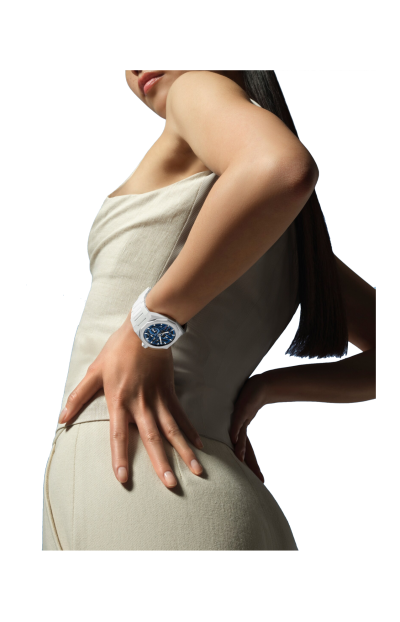 IL DEFY SKYLINE SKELETON CON CASSA OTTAGONALE IN CERAMICA BIANCA DA 41 MM E LUNETTA SFACCETTATA SI DISTINGUE PER IL QUADRANTE BLU APERTO, ISPIRATO ALL’EMBLEMATICA STELLA A QUATTRO PUNTE DI ZENITH. ANIMATO DAL MOVIMENTO DI MANIFATTURA AUTOMATICO SCHELETRATO AD ALTA FREQUENZA EL PRIMERO 3620 SK, DOTATO DEL PRIMISSIMO INDICATORE CON PRECISIONE AL 1/10 DI SECONDO. VIENE FORNITO CON UN BRACCIALE IN CERAMICA E UN SECONDO CINTURINO IN CAUCCIÙ BIANCO CON MOTIVO PER SPERIMENTARE APPIENO L’INTERCAMBIABILITÀ.