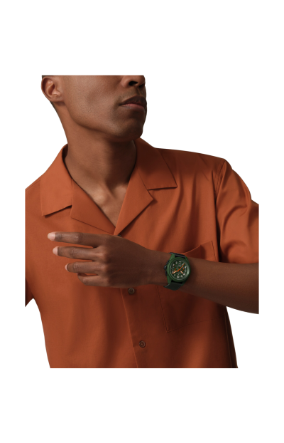 IL PILOT BIG DATE FLYBACK PORTER IN EDIZIONE LIMITATA VANTA UNA CASSA IN CERAMICA VERDE KAKI DA 42,5 MM CON CORONA SOVRADIMENSIONATA E UN QUADRANTE TESTURIZZATO VERDE KAKI CON NUMERI ARABI LUMINESCENTI DI GRANDI DIMENSIONI. ANIMATO DAL CALIBRO CRONOGRAFICO AUTOMATICO AD ALTA FREQUENZA EL PRIMERO 3652 CON FUNZIONI GRANDE DATE E FLYBACK. PER COMPLETARE IL LOOK, IL PILOT BIG DATE FLYBACK PORTER EDITION È DOTATO DI DUE CINTURINI. IL PRIMO, REALIZZATO CON UN RESISTENTE TESSUTO DI NYLON FORNITO DA PORTER, È UN CINTURINO IN NYLON COLOR VERDE KAKI CON ELEMENTI IN VELCRO ARANCIONI, CON IL LOGO PORTER CUCITO. IL SECONDO È UN CINTURINO IN CAUCCIÙ EFFETTO “CORDURA” COLOR VERDE KAKI.