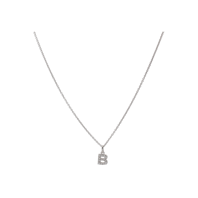 COLLANA GIROCOLLO IN ORO BIANCO CON PENDENTE LETTERA "B" IN PAVÉ DI DIAMANTI - 370-XN2491