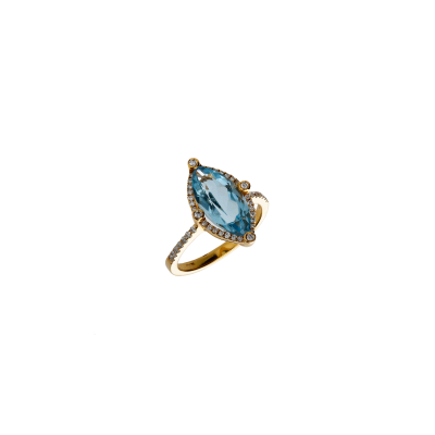 ANELLO ROSETTA IN ORO BIANCO CON ACQUAMARINA E DIAMANTI - 254189