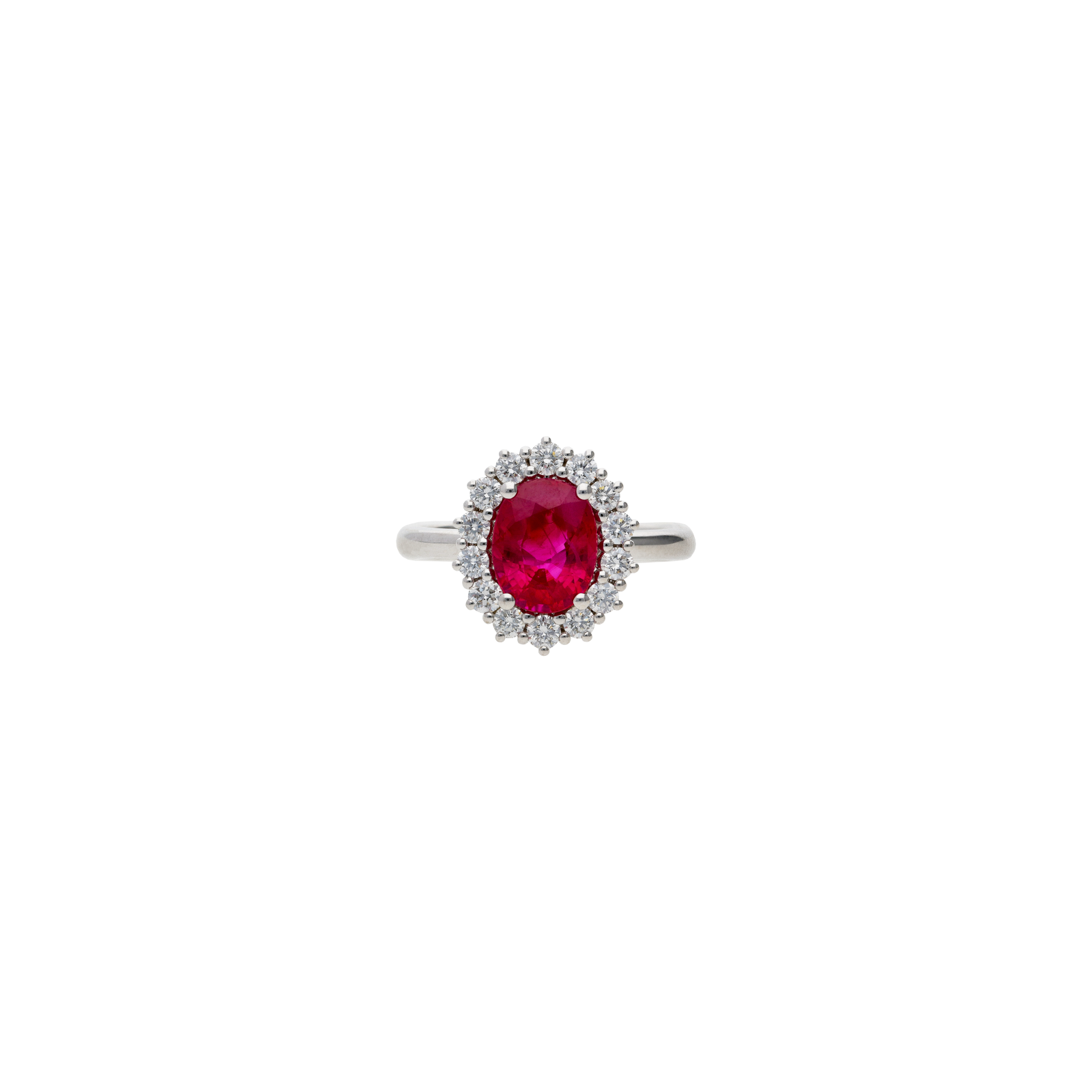 ANELLO IN ORO BIANCO 18 CARATI CON RUBINO TAGLIO OVALE E DIAMANTI BIANCHI TAGLIO BRILLANTE