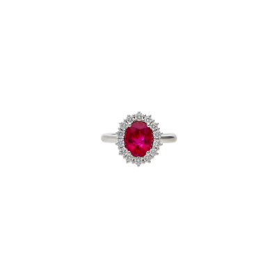 ANELLO ROSETTA IN ORO BIANCO CON RUBINO CENTRALE E CONTORNO DI DIAMANTI - 326-AN276-9-7