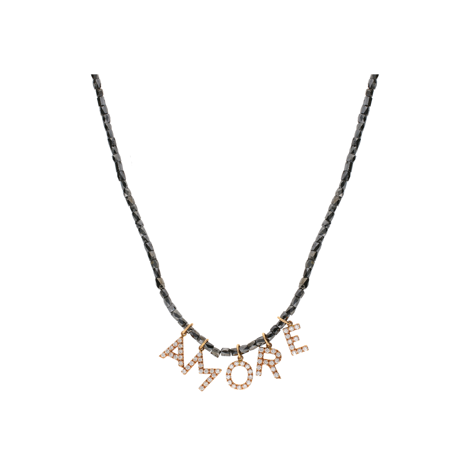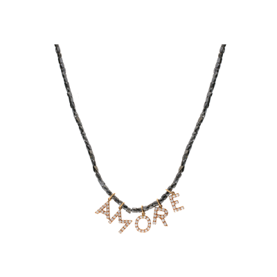 COLLANA IN ORO BIANCO E ORO ROSA CON FILO DI DIAMANTI NERI E LETTERE "AMORE" IN PAVÉ DI DIAMANTI BIANCHI - BACO03