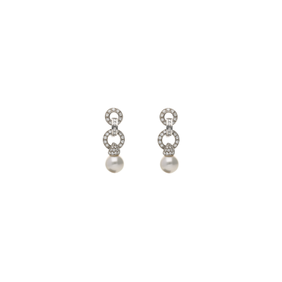 ORECCHINI PENDENTI IN ORO BIANCO CON PERLE E PAVÉ DI DIAMANTI - F.78