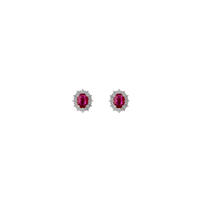 ORECCHINI IN ORO BIANCO 18 CARATI CON RUBINI TAGLIO OVALE E DIAMANTI BIANCHI TAGLIO BRILLANTE