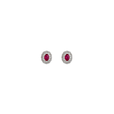 ORECCHINI IN ORO BIANCO 18 CARATI CON RUBINI TAGLIO OVALE E DIAMANTI BIANCHI TAGLIO BRILLANTE