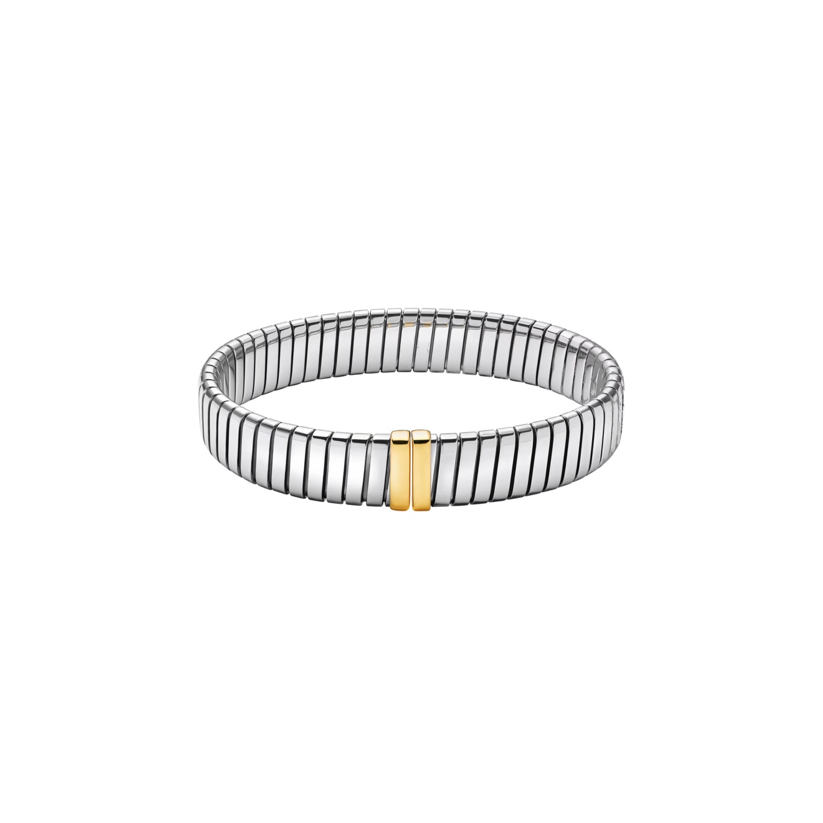 Trasformando una tecnica orafa adottata dalla Maison negli anni Quaranta in un’iconica collezione di gioielleria, Bvlgari Tubogas è un emblema della passione di Bvlgari per la sperimentazione creativa e della sua capacità di modellare i materiali più preziosi come fossero materia viva. Attingendo ai pionieristici codici estetici della Maison e alle sue inedite combinazioni di materiali, il bracciale Bvlgari Tubogas Gold & Steel unisce al nobile splendore dell'oro il fascinodell'acciaio. Un'audace espressione di libertà creativa, che prende forma attraverso una maestria d'eccezione. Bracciale Bvlgari Tubogas in acciaio inossidabile con borchie in oro giallo 18 kt. L'acciaio utilizzato per i gioielli Bvlgari è una lega ipoallergenica, con un rilascio di nichel pienamente conforme ai limiti di legge. Se ne sconsiglia l'uso a chi è affetto da gravi allergie al nichel o a chi desidera un gioiello privo di nichel al.