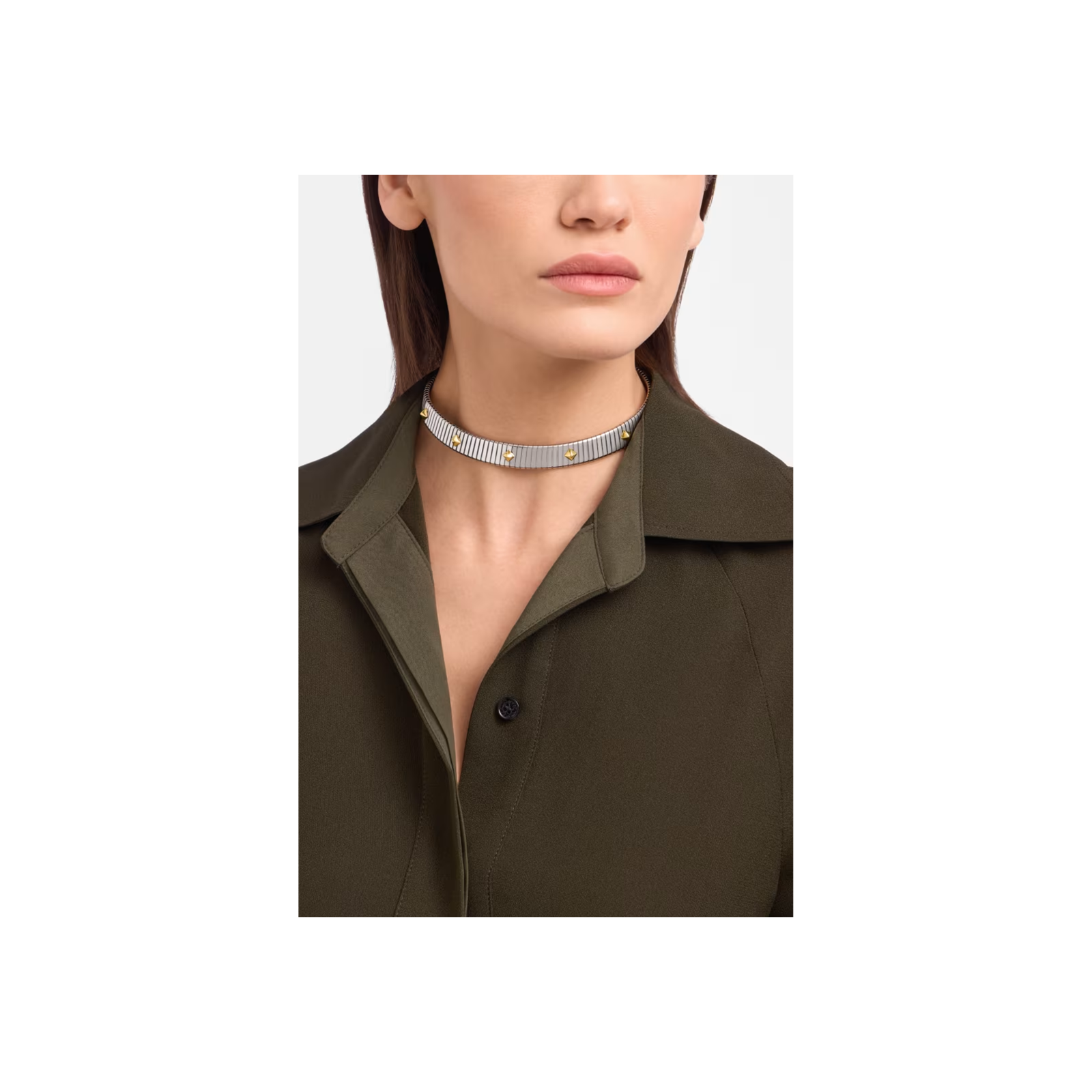 Trasformando una tecnica orafa adottata dalla Maison negli anni Quaranta in un’iconica collezione di gioielleria, Bvlgari Tubogas è un emblema della passione di Bvlgari per la sperimentazione creativa e della sua capacità di modellare i materiali più preziosi come fossero materia viva. Attingendo ai pionieristici codici estetici della Maison e alle sue inedite combinazioni di materiali, la collana Bvlgari Tubogas Gold & Steel unisce al nobile splendore dell'oro il fascinodell'acciaio. Un'audace espressione di libertà creativa, che prende forma attraverso una maestria d'eccezione. Collana Bvlgari Tubogas in acciaio inossidabile con borchie in oro giallo 18 kt. L'acciaio utilizzato per i gioielli Bvlgari è una lega ipoallergenica, con un rilascio di nichel pienamente conforme ai limiti di legge. Se ne sconsiglia l'uso a chi è affetto da gravi allergie al nichel o a chi desidera un gioiello privo di nichel al.