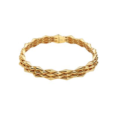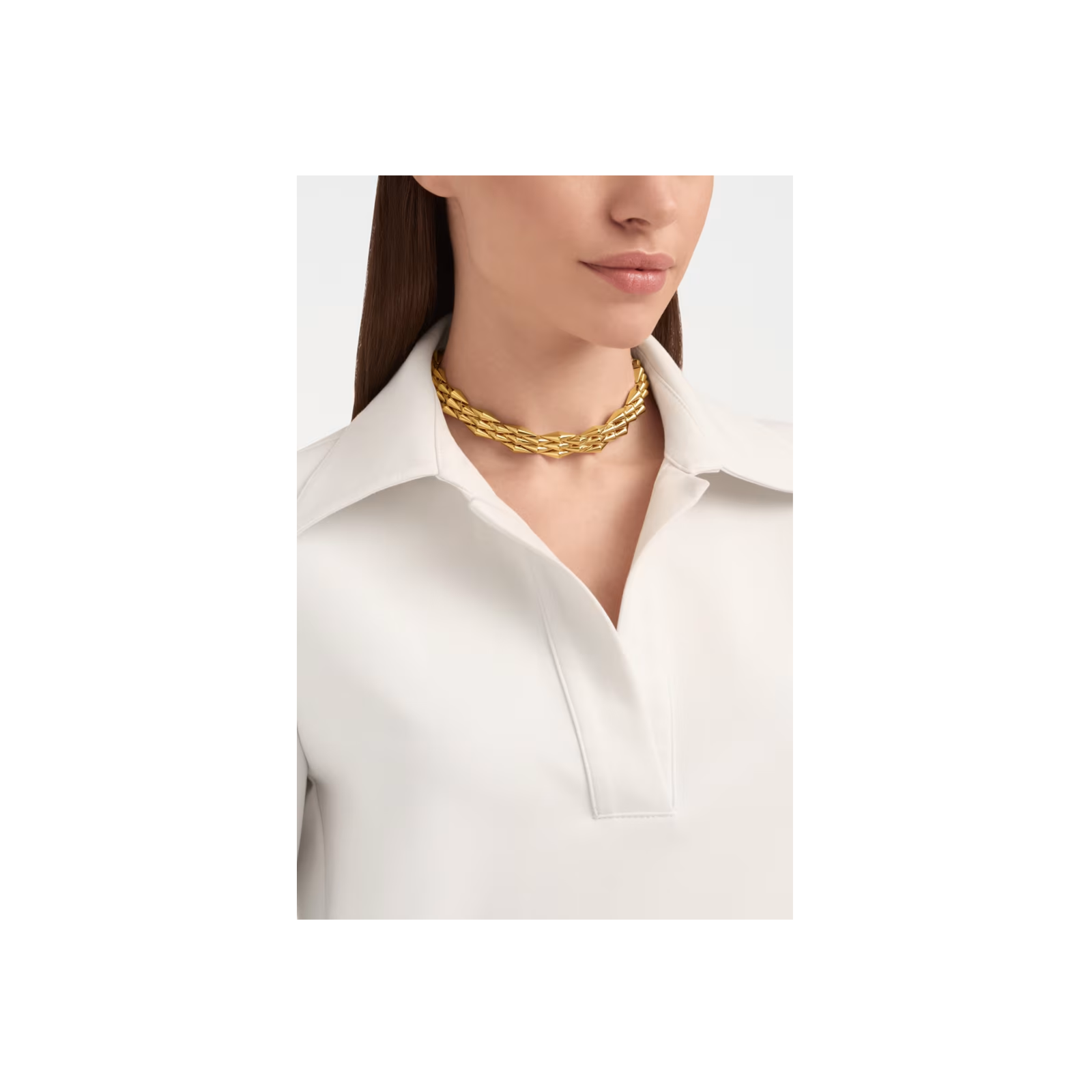 Parte della nuova collezione Bvlgari Eternal – un omaggio ai tesori degli archivi Bvlgari, rivisitati in stile contemporaneo – la collezione Vimini inaugura il primo capitolo di questo affascinante viaggio fra tradizione e innovazione. Ispirata a un bracciale degli anni Quaranta, epoca delle prime audaci geometrie modulari di Bvlgari e dell'ingegnoso passaggio all’oro giallo in risposta alle restrizioni del dopoguerra, la collana Vimini in oro giallo 18 kt celebra la capacità della creatività di trascendere ogni limite. Con le sue linee fluide, tattili e splendidamente moderne, il gioiello traspone in oro prezioso il ritmo naturale del motivo intrecciato, definendo un nuovo paradigma di stile nell’evoluzione della tradizione Bvlgari. Collana Vimini in oro giallo 18 kt.