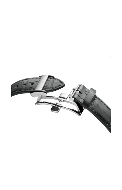 Movimento meccanico a carica automatica con frequenza di 25'200 alternanze orarie e riserva di carica di circa 72 ore, bilanciere-spirale in silicio monocristallino. Impermeabile fino a 3 bar, vetro zaffiro antigraffio con trattamento antiriflesso multistrato su entrambi i lati. Quadrante salmone. Bracciale in cinturino in alligatore, con chiusura déployante a tripla sicurezza e meccanismo di apertura a pressione.