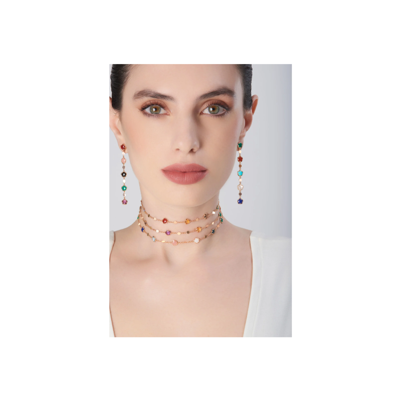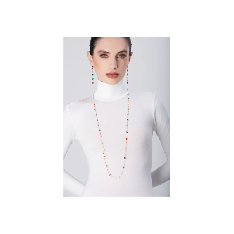 SAUTOIR FIGLIA DEI FIORI IN ORO ROSA CON AGATA VERDE, CORNIOLA ROSSA, ONICE, PIETRA DI LUNA BIANCA, CALCEDONIO ROSA, CITRINO, AMETISTA, TOPAZIO BLU LONDON, QUARZO FUMÉ, TOPAZIO BLU, LAPISLAZZULI, CRISOPRASIO, GRANATO ROSSO, TURCHESE, AGATA BIANCA, CALCEDONIO AZZURRO E DIAMANTI - 16705R